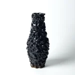 The Coral vase, a creation by Greek designer, Yiannis Vogdanis, is a testament to the beauty found in overlooked intricacies. Crafted from glazed black porcelain, its textured surface mimics the organic shape of a coral reef. With this coastal concept, it integrates rhythmic patterns and forms from the depths of the ocean, while embracing radical minimalism. Nodding to biophilia, the vase becomes a living sculpture, resonating with the organic energy of the natural world. Rooted in the artist’s research and philosophy, “Coral” materializes and showcases the often unnoticed beauty around us