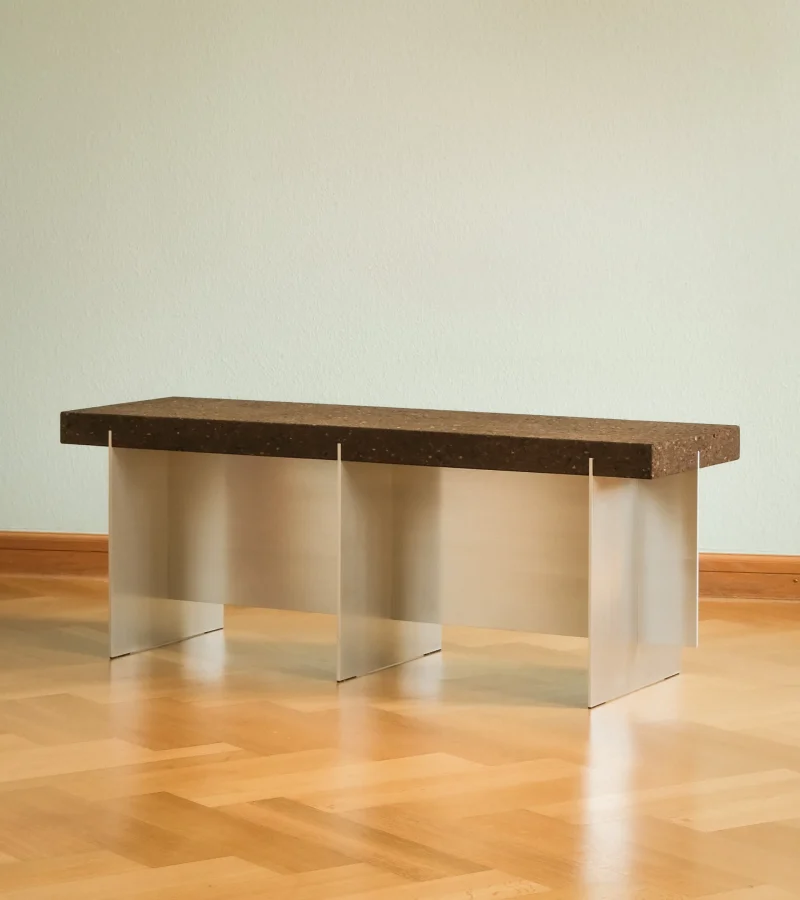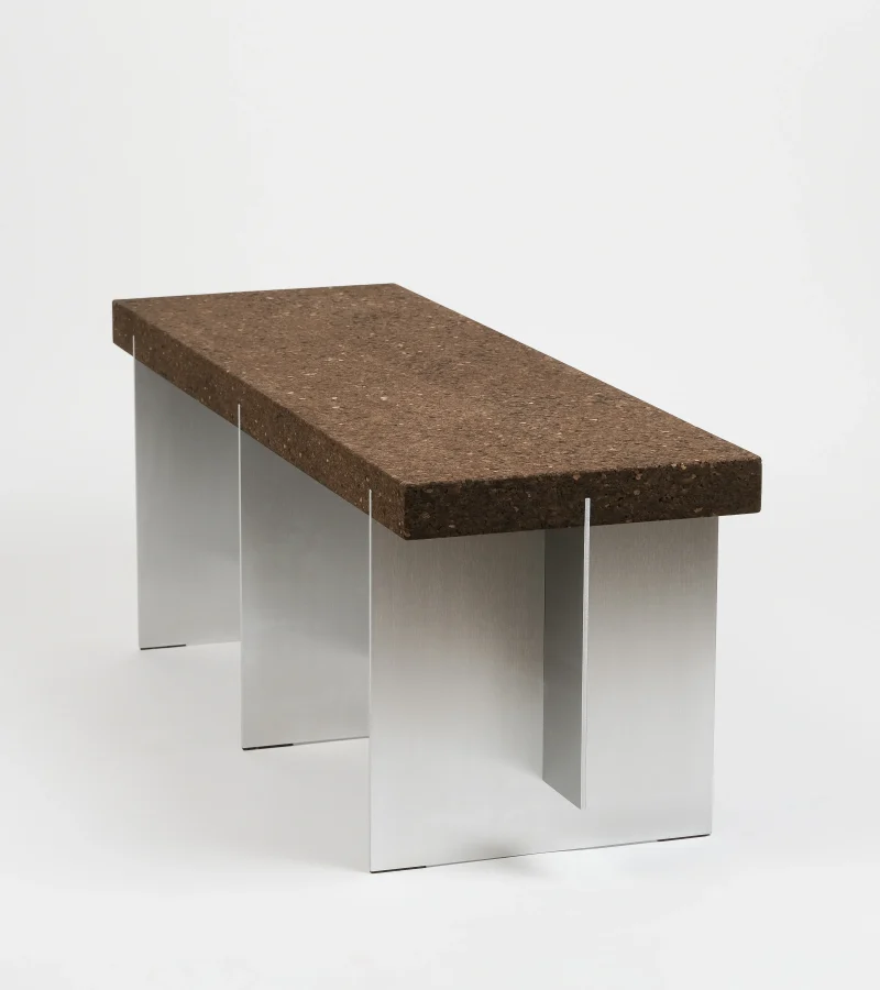 A timeless Bench within the “Collection Cork X” by Germany-based designer Robert Megel fuses cork and metal in a most minimalistic joinery.