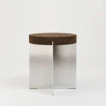 A contemporary stool within the “Collection Cork X” by Germany-based designer Robert Megel fuses cork and metal in a most minimalistic joinery.