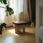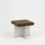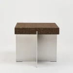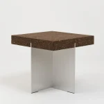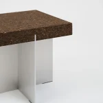 A sculptural side table design within the “Collection Cork X” by Germany-based designer Robert Megel fuses cork and metal in a most minimalistic joinery.