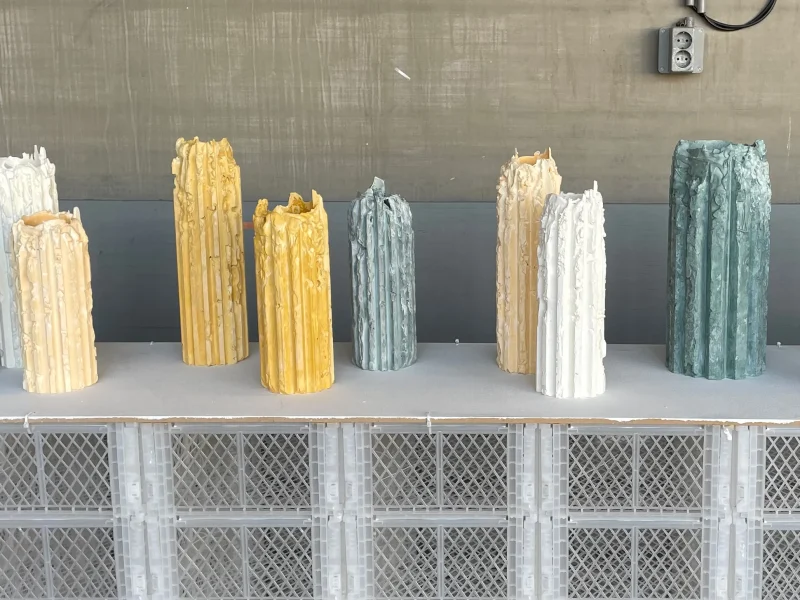 Cornice by Lenny Stöpp is an evolving collection of vessels born from a deep exploration of the traditional craft of running cornice. For centuries, this technique has adorned interiors and exteriors with intricate plasterwork, carrying with it a legacy of ornamentation often perceived as antiquated. However, in reimagining this method, a compelling dialogue emerges between past and present. By honoring the historical essence of the craft while reshaping its purpose, these contemporary forms transcend mere decoration. The process involves crafting hollow molds and substituting traditional plaster with alpha crystalline gypsum, allowing these once-static embellishments to become functional objects. In this transformation, the technique is not only revived but redefined, shedding its association with obsolescence and finding new relevance in the modern world.