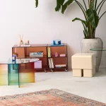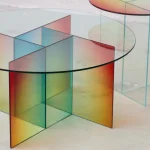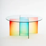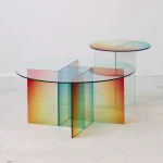 The inspiration behind the Cosmos Coffee Table stems from the idea that different colors and ideas can coexist in harmony, reflecting the vibrant texture of our multicultural environment. Prepared by talented craftsmen, this product is created by combining rainbow gradient-colored glasses using a special bonding technique.