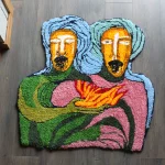 This handmade rug by Ia Liparteliani is a vibrant and unique decorative piece that adds a pop of color to any room. Its special design and lively hues make it a standout feature, perfect for wall hanging. Bring a touch of artisanal charm into your space with this one-of-a-kind rug.