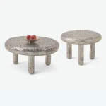 The Crater coffee tables by LMNOH are more than furniture; it’s a lunar landscape transformed. Its sculpted form, etched with cosmic detail, invites exploration. A fusion of art and utility, it’s a celestial centrepiece for your space. Cast in aluminium, the table top replicates the moon’s craters with striking accuracy, while the three sturdy legs evoke the lunar landscape’s rugged terrain. This unique piece seamlessly blends art and function, making it a captivating centerpiece for any modern interior.