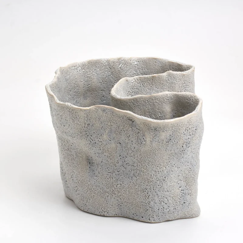 Hand-built ceramic vase with bubbly structure glaze by SIUP Studio.