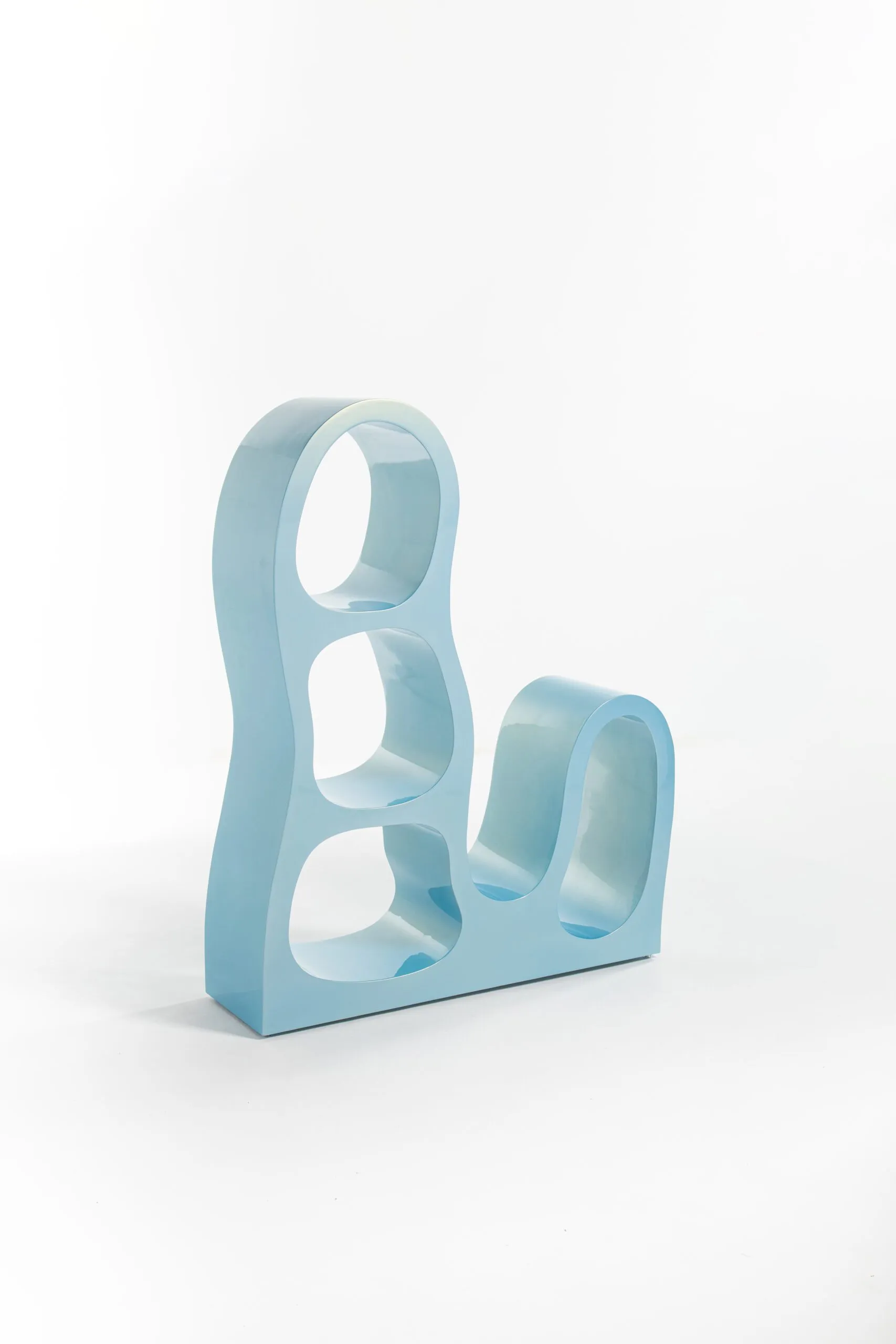 Crotto is a series of bookshelves in poplar wood. The manufacturing process inspired by violin making gives the object a hollow body whose appearance is both massive and organic.