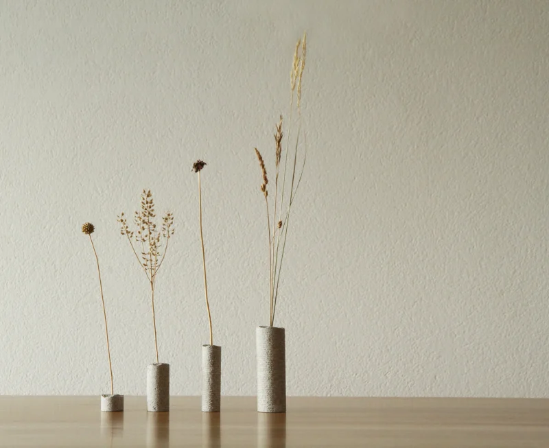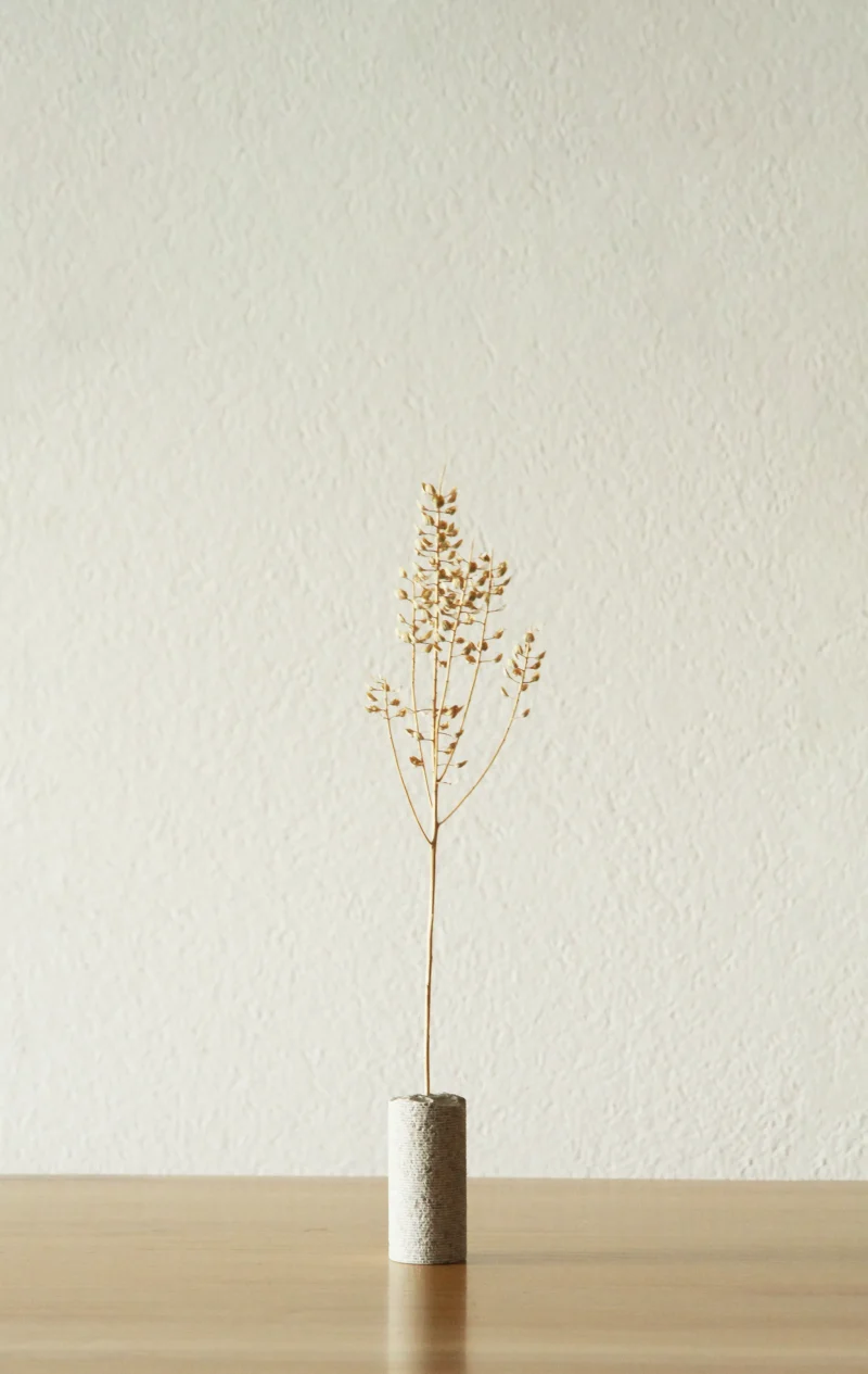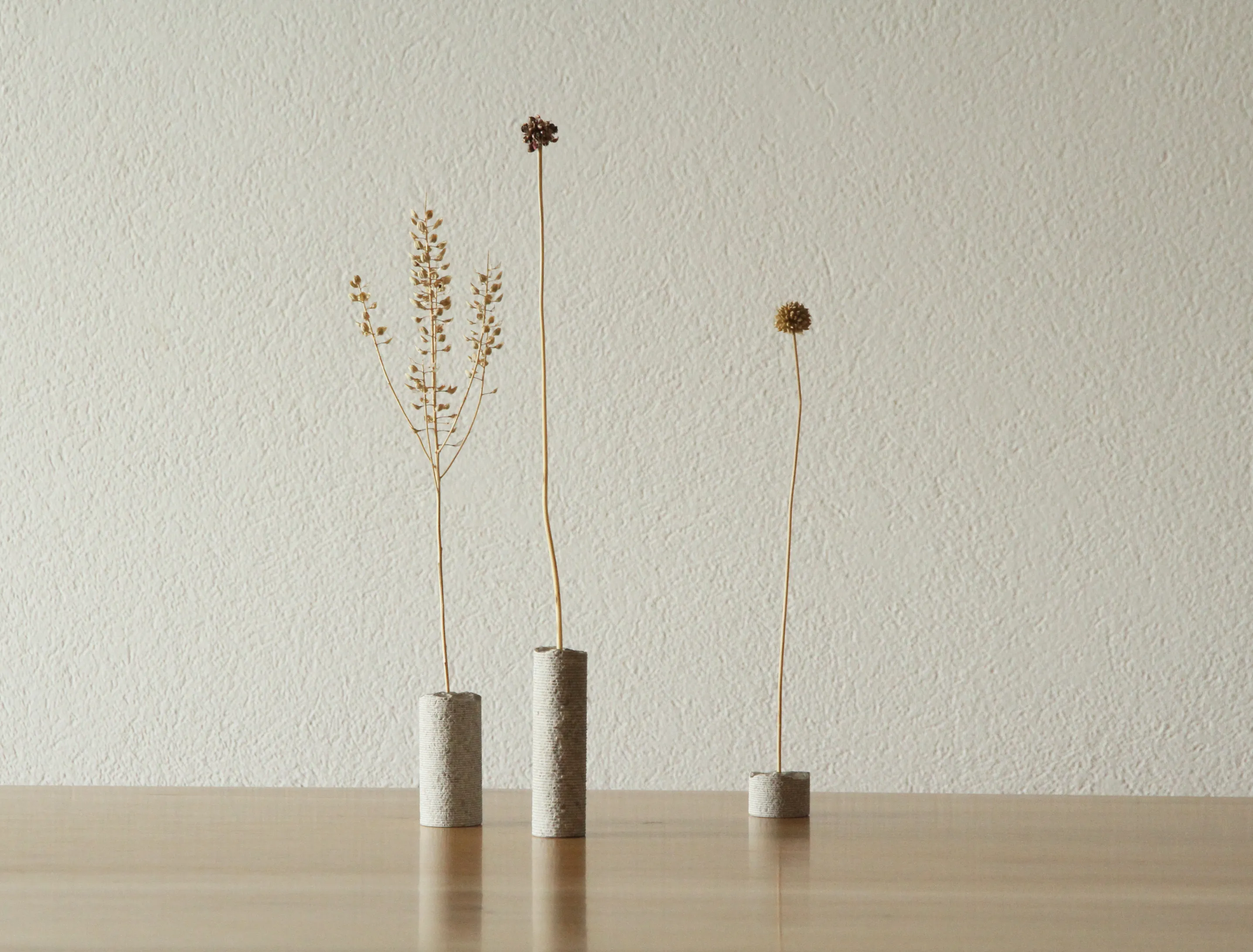 CRTG is a dried flower vase, inspired by the most common quarry waste: the coring. It is thus a cylinder that comes with both of its ends unfinished. We thought of it as a slim and minimalist object.
