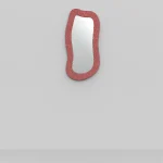 Crumble de Verre mirror by Riccardo Cenedella, is inspired by a glass processing technique prior to the invention of blown glass, already used in the Phoenician and Egyptian eras. This technique consists in placing glass powder inside moulds with a subsequent firing, creating a solid object through the fusion of the powder, this technique is called paté de verre. Through the collaboration with Barbini Specchi Veneziani, the project aims to reuse glass waste from Murano for the creation of a new mirror collection through experimental approaches inspired by the paté de verre technique. Specifically, instead of pulverizing the waste, the intention is to reuse it in the form of grit and melt it at lower temperatures in order to create objects that are characterized by an aspect that can refer to the origin of the raw material. The mirror’s utilization of Murano glass produces maximalist colors and textures, perfectly complementing the intrinsic qualities of this extraordinary glass.