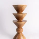 The Cuatro Sculpture, a striking decorative piece from Daniel Orozco Estudio’s 2024 collection, embodies the spirit of Mexican craftsmanship and the commitment to natural materials that defines the studio’s work. Created from solid cedar wood sourced sustainably from the Yucatán, this sculpture features layered truncated cones meticulously hand-turned and finished in a natural sealant, enhancing the wood’s organic texture and resilience. Suitable for indoor or covered outdoor spaces, Cuatro commemorates four years of fundraising support for LADLE (Los Amigos de la Esquina), celebrating Mexican artisanship and benefiting the education of children in the Riviera Maya. Dimensions: 25D x 60H cm.