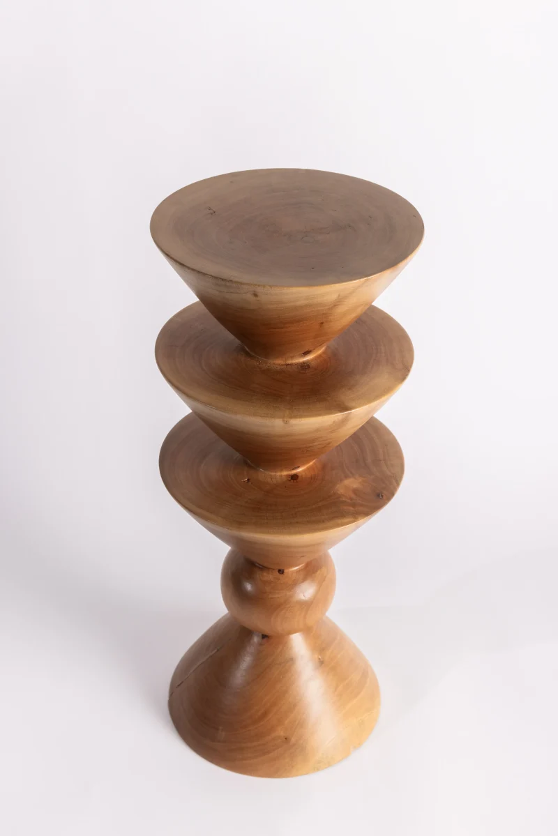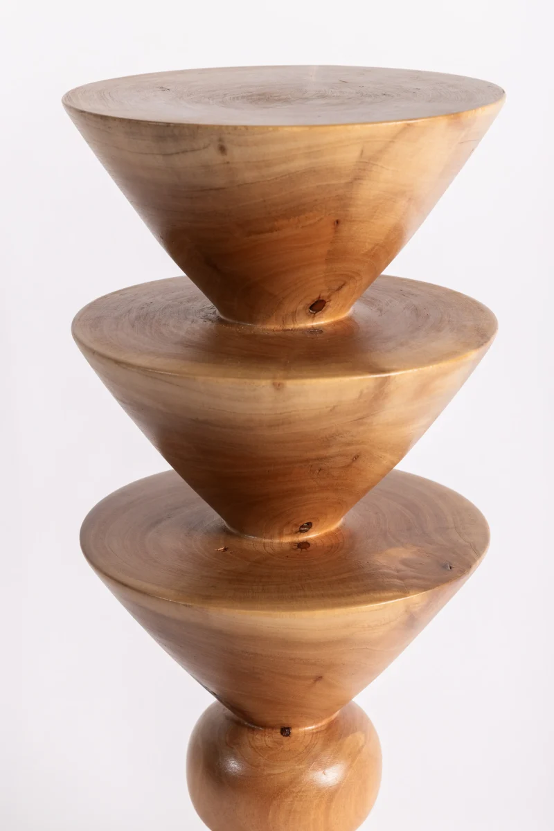 The Cuatro Sculpture, a striking decorative piece from Daniel Orozco Estudio’s 2024 collection, embodies the spirit of Mexican craftsmanship and the commitment to natural materials that defines the studio’s work. Created from solid cedar wood sourced sustainably from the Yucatán, this sculpture features layered truncated cones meticulously hand-turned and finished in a natural sealant, enhancing the wood’s organic texture and resilience. Suitable for indoor or covered outdoor spaces, Cuatro commemorates four years of fundraising support for LADLE (Los Amigos de la Esquina), celebrating Mexican artisanship and benefiting the education of children in the Riviera Maya. Dimensions: 25D x 60H cm.