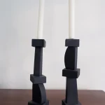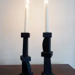 Oak Candleholders, with ebonized finish and aluminium candle cups.