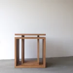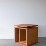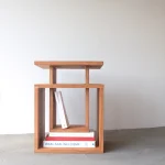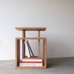 This side table optimizes the use of space with the possibility of extending the height of the top and at the same time personalizing it with loved objects and books.