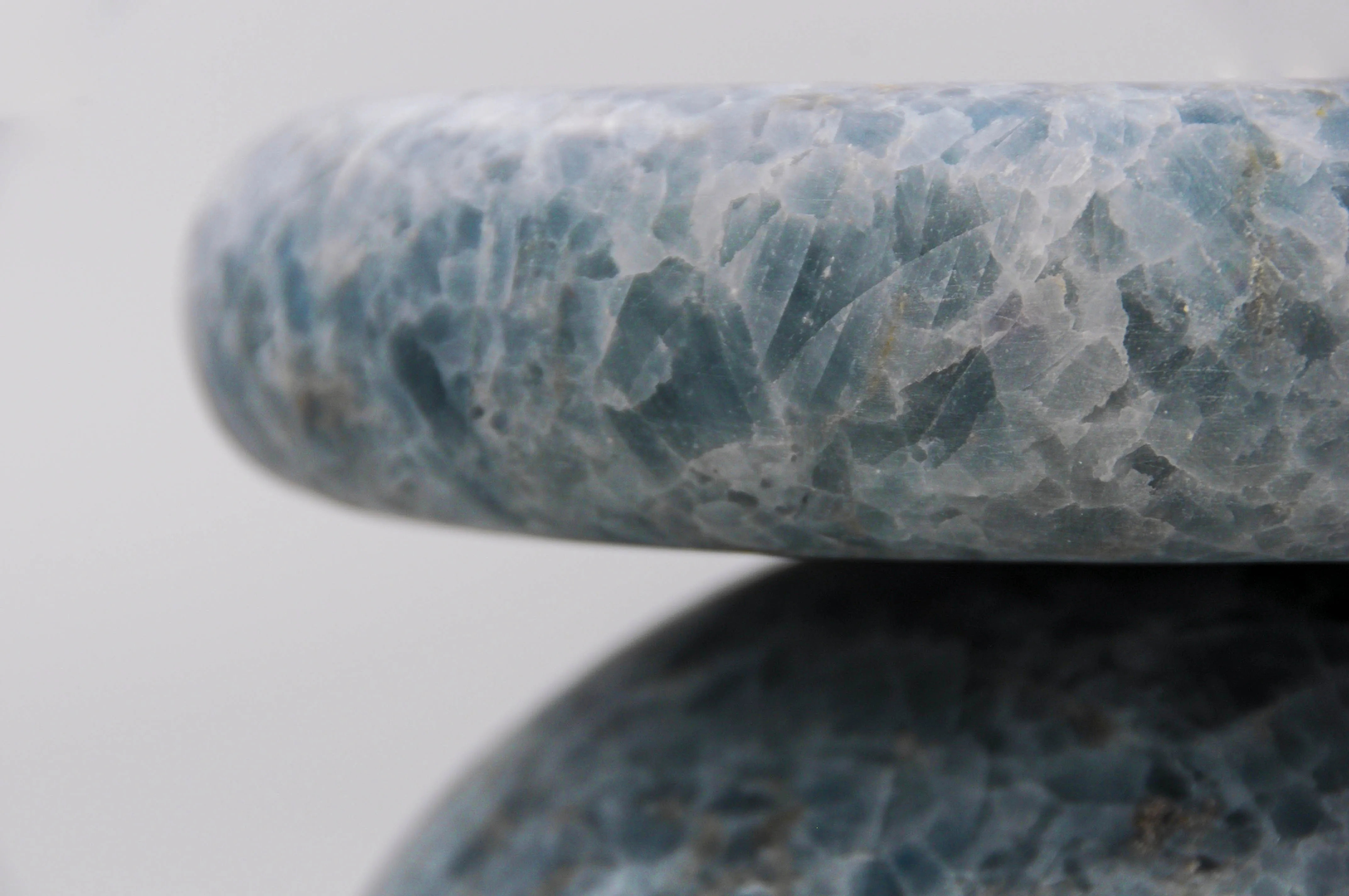Drawing on the language of crystal healing, this piece channels the calming energy of blue calcite, a crystal long associated with clarity, protection, and creative flow. Working with rocks endemic to Mexico contextualizes the work on a geological level, situating the pieces within a continuing and evolving historical narrative. Like an archaeological exploration, working with native stones reveals a heritage of meticulous craftsmanship developed under the possibilities and limitations of local materials. When sculpting stone, there is only one chance to get things right. As each rock is different, the form must be tailored to the material, in a process of discovering what each piece conceals.