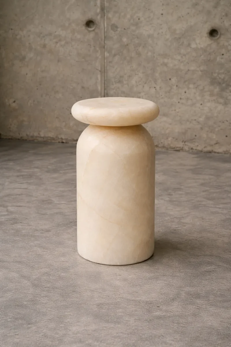 2024 architectural design artisan furniture Beyond Gender Boho Chic Brutalist Collectible Design Contemporary Design Contemporary onyx design Cult Stool Design object gallery furniture hand sculpted Handcarved Lush luxury furniture marble furniture Mexican marble mexican onyx Minimalist modernist furniture Natural stone natural stone side table onyx furniture Onyx stone table Onyx stool Pantone Color of the Year 2026: Cloud Dancer Pedestal table Sculptural furniture Sculptural stool Sculpture Side table Soft Minimalism Stone Stone furniture Stone pedestal table stone stool Stool unique furniture White onyx