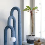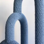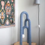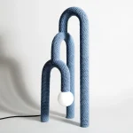 Concealed beneath a soft skin, the inner materiality of the lamp remains hidden, surprising the observer with an unexpected tactile quality. The steel frame, subtly echoing elements of Bauhaus design, is delicately enveloped in a hand-crocheted outer layer. Cumula is not just a source of light; it’s a sensorial exploration, marrying form and function in an intriguing dance of elements.