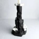 This artfully sculpted candle holder is a testament to innovative reuse, handcrafted from repurposed wood and remnants of pristine white marble. With delicate precision, I’ve enhanced the wood using the traditional Japanese Yakisugi method, and it’s then elegantly finished with natural oils and sealed with beeswax. Beneath, a subtle cork lining ensures your surfaces remain pristine.