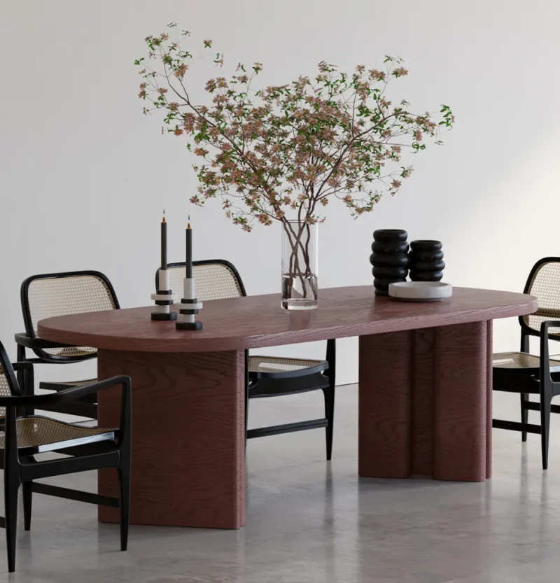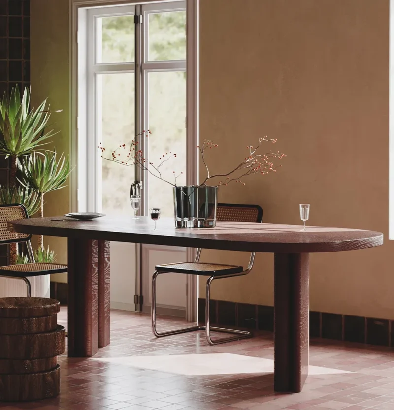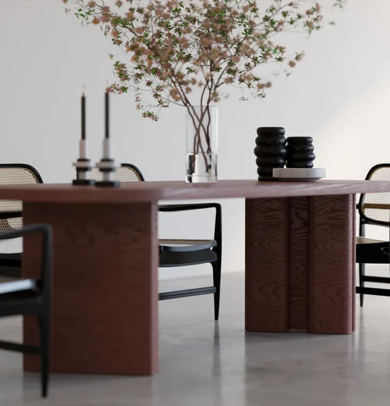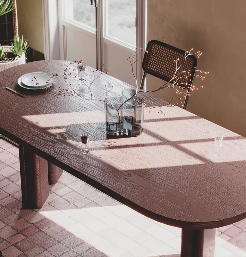 Brutalist Cosy Dining Room Dining table Geometric Glossy Lacquered Minimalism Minimalist Modern design Space Age The New Bauhaus Wood dining table