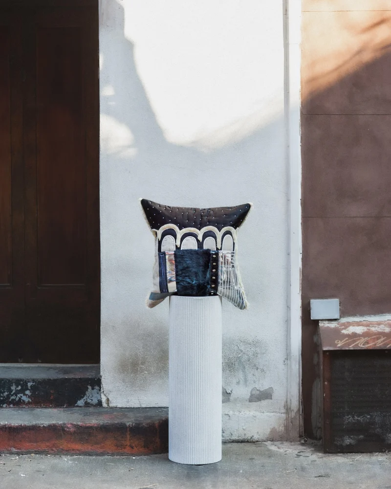The work of Teddy Breedlove finds itself at the intersection of art and design. Over the past few years, he has explored textiles, developing his expressive style. Emphasizing the beauty of textiles, his work is textural, whimsical, and warm. His materiality is responsibly sourced, working primarily with deadstock seconds. Each piece created in his New York studio is a one-of-a-kind work of art.