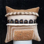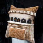 Teddy considers his cushions to be textile paintings – often referring to them as his “Alternative Canvas”. Each one takes on a different expression, influenced by the world around him. They are highly decorative, incorporating a variety of hand and machine techniques.