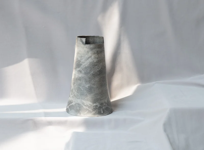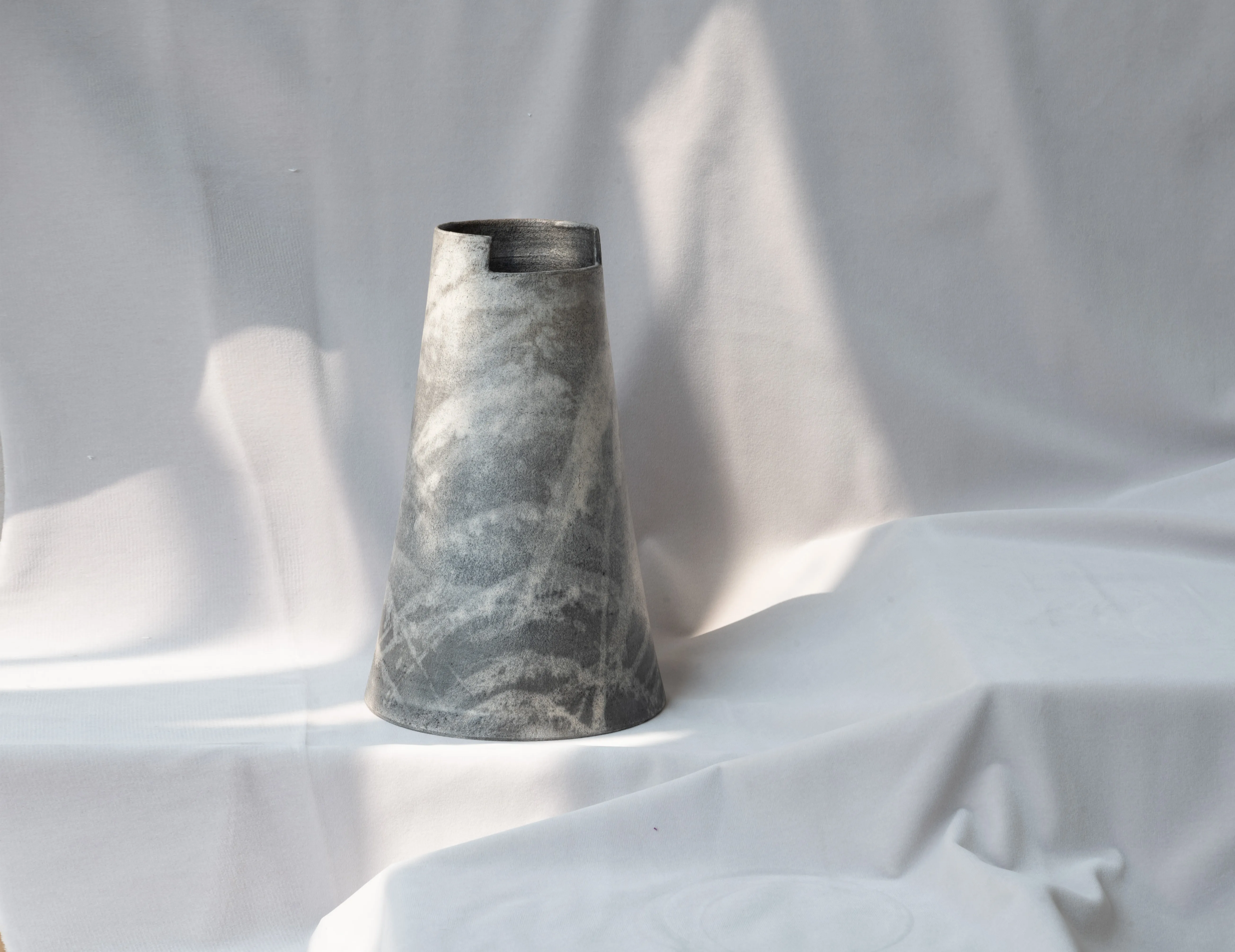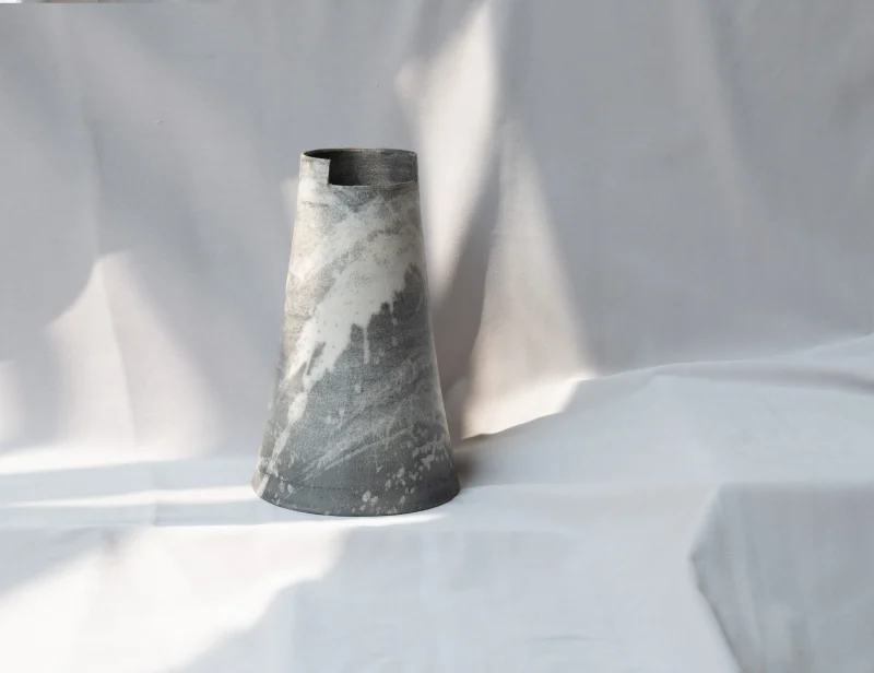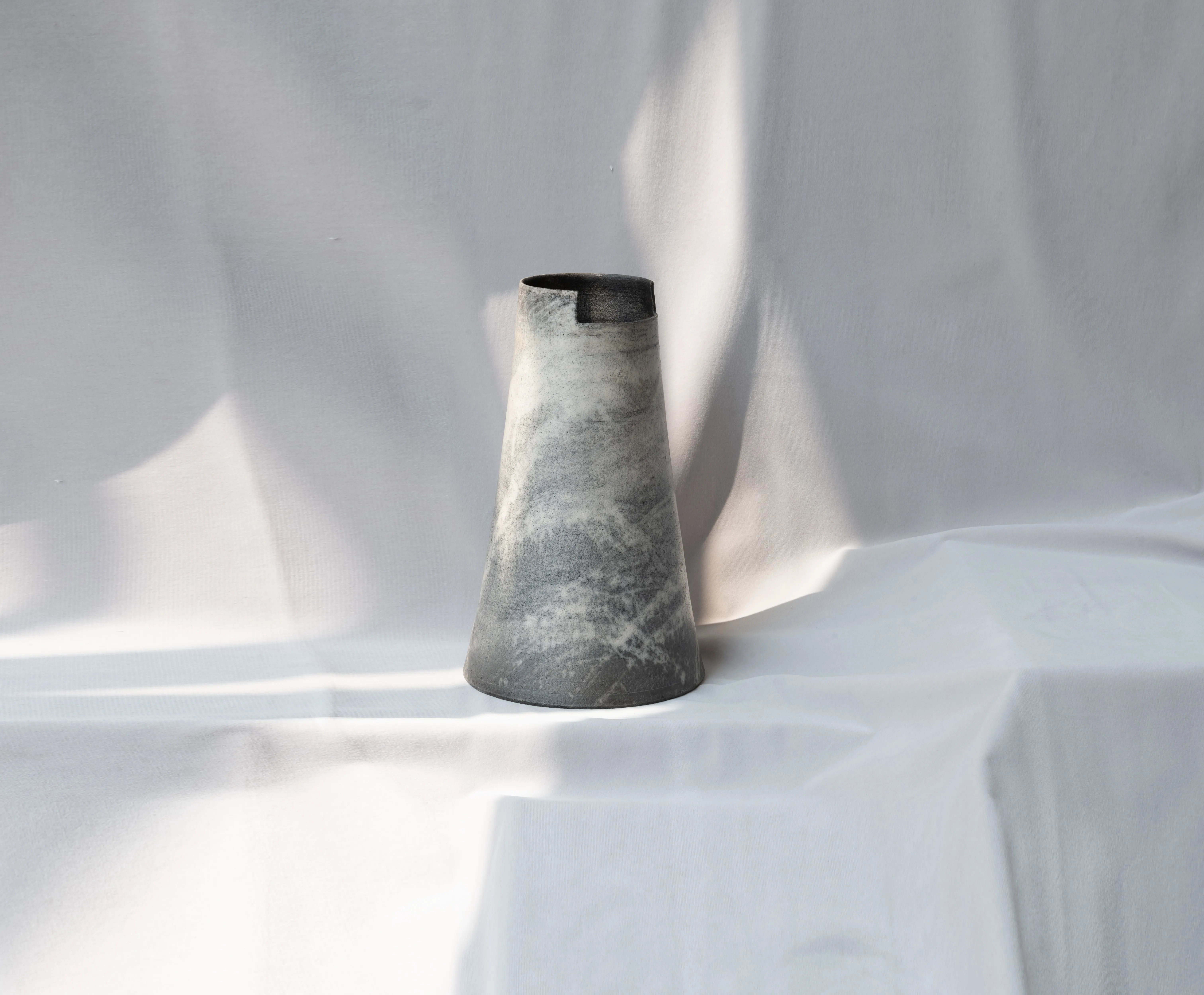 Characterized by clean cuts, the clay is literally sliced by the potter himself. The design is minimal, inspired by Japanese aesthetics the birthplace of the Raku technique used here.