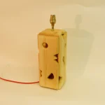 Constructed from Redwood pine which will age and become more golden with time Featuring B22 Brass Lamp holder, Vermillion Red cord with in cable switch.