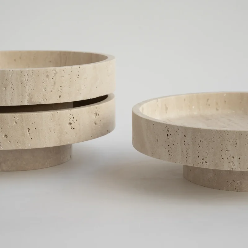 Introducing Cyclo by Kiwano Concept, a versatile and elegantly crafted bowl made from premium marble or travertine stone. Cyclo blends natural beauty with functional design, making it a perfect addition to any space in your home. Whether you use it in the kitchen as a stylish fruit bowl, in the bathroom as a luxurious vessel for soaps or towels, or as a decorative centerpiece in your living room, Cyclo adds a touch of sophistication and timeless charm.