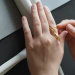 The Cypress Ring, from the Woodskin Collection, inspired by the fluid, peeling layers of tree trunks shaped by time and nature. Sculpted with minimal, organic curves, it wraps gently around the thumb—like bark settling into its final form—becoming a quiet extension of the body.