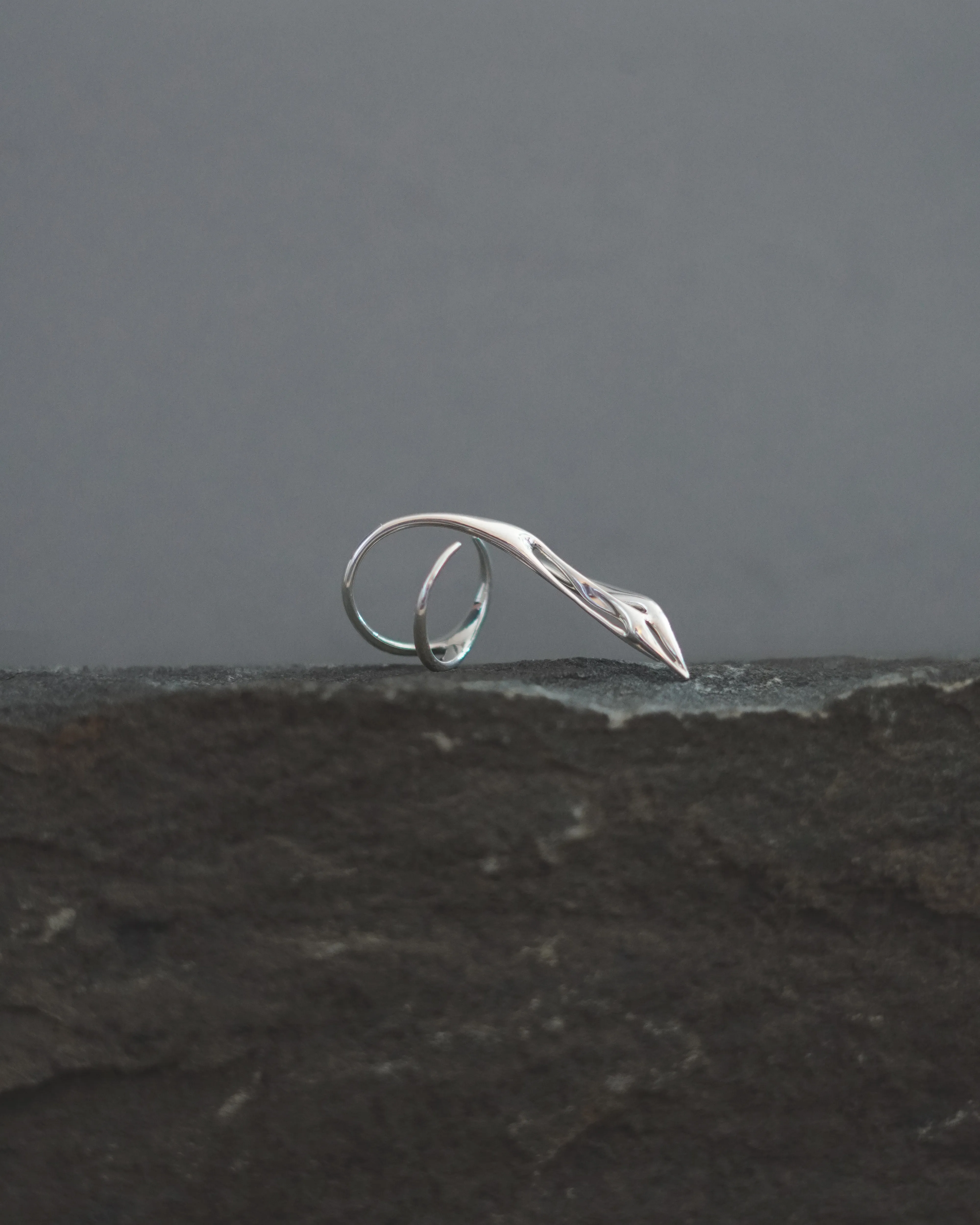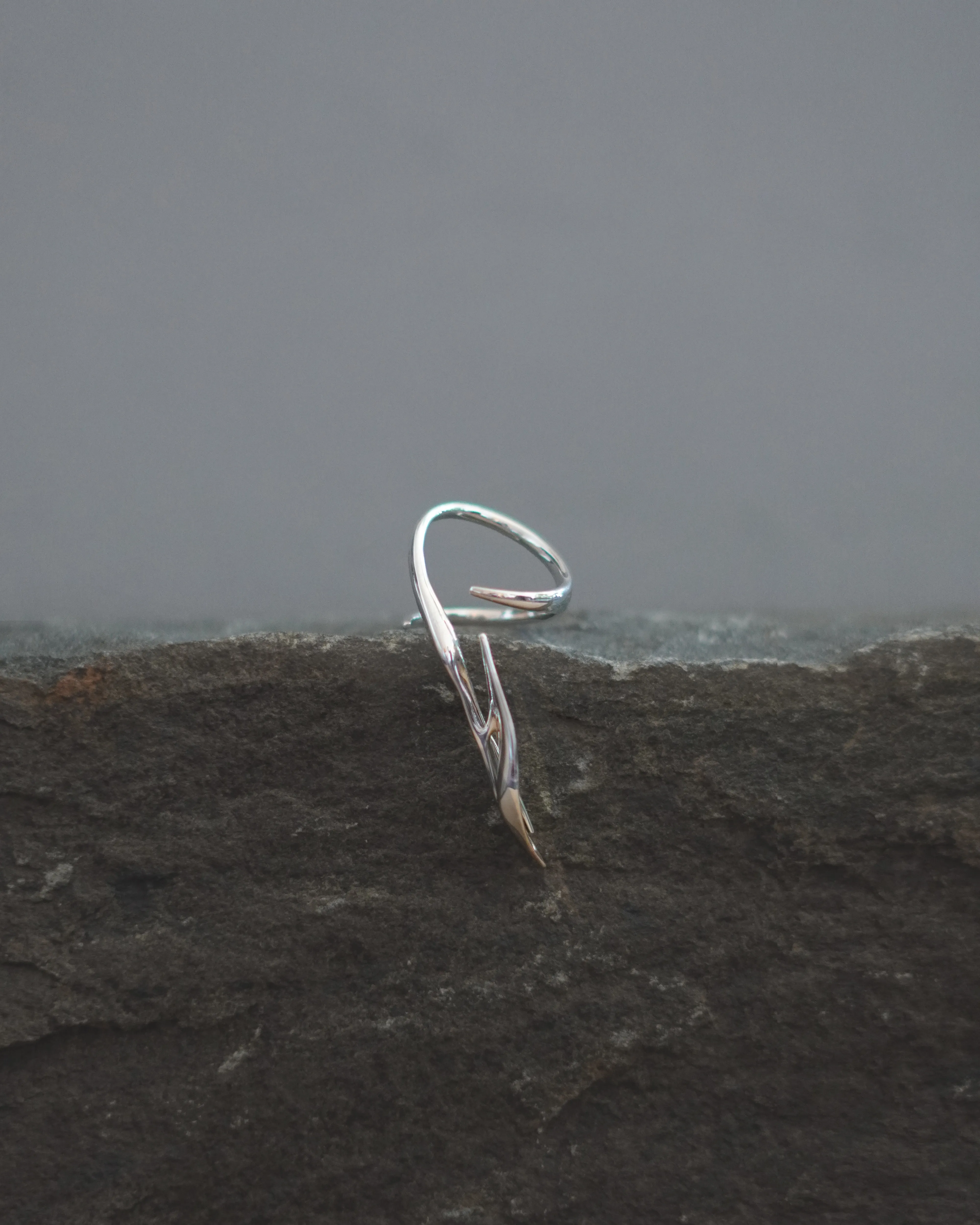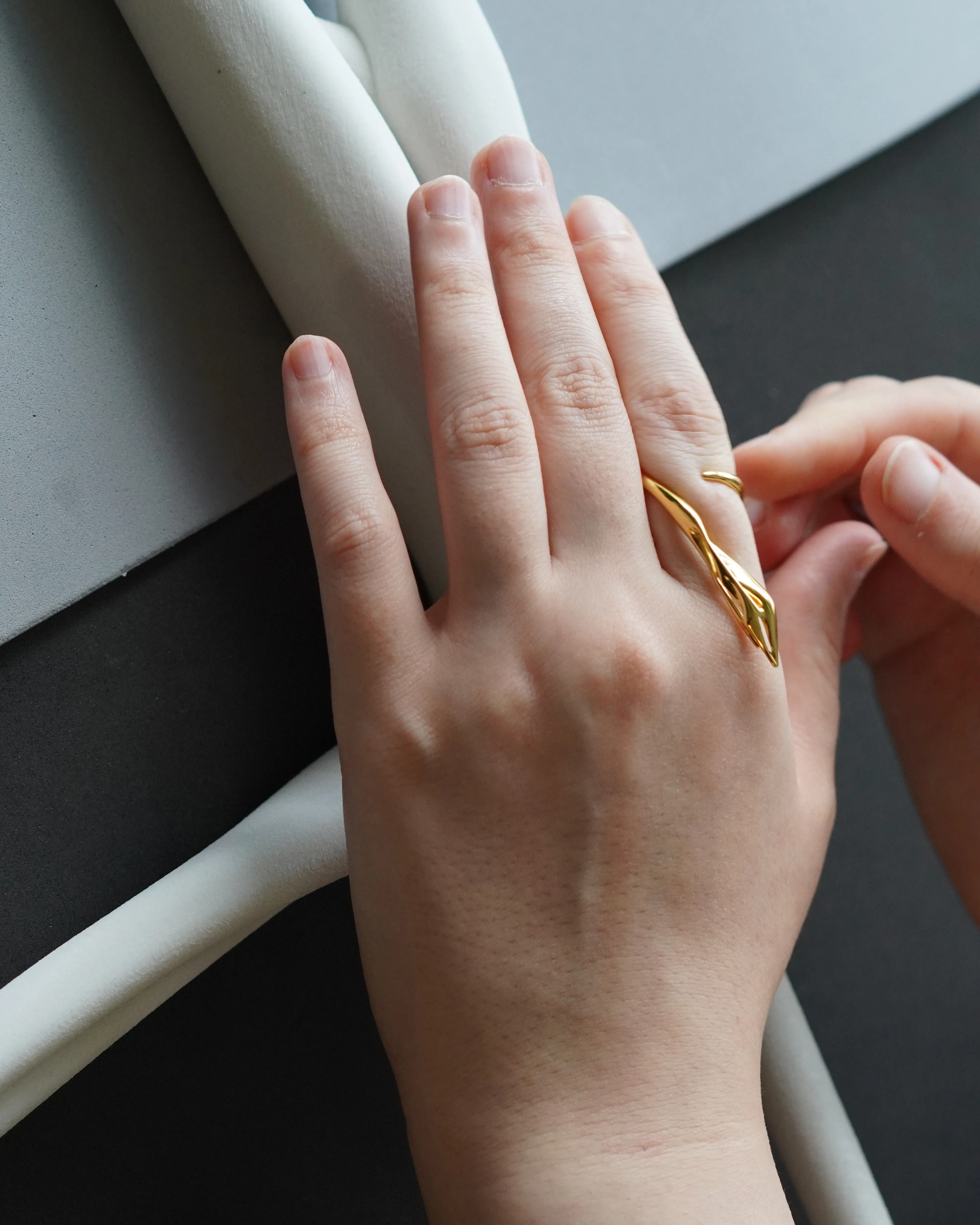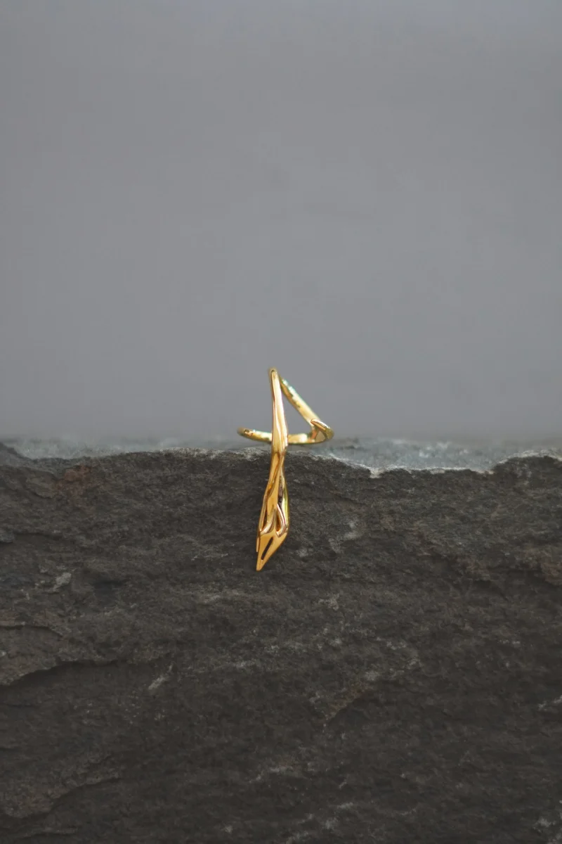 The Cypress Ring, from the Woodskin Collection, inspired by the fluid, peeling layers of tree trunks shaped by time and nature. Sculpted with minimal, organic curves, it wraps gently around the thumb—like bark settling into its final form—becoming a quiet extension of the body.
