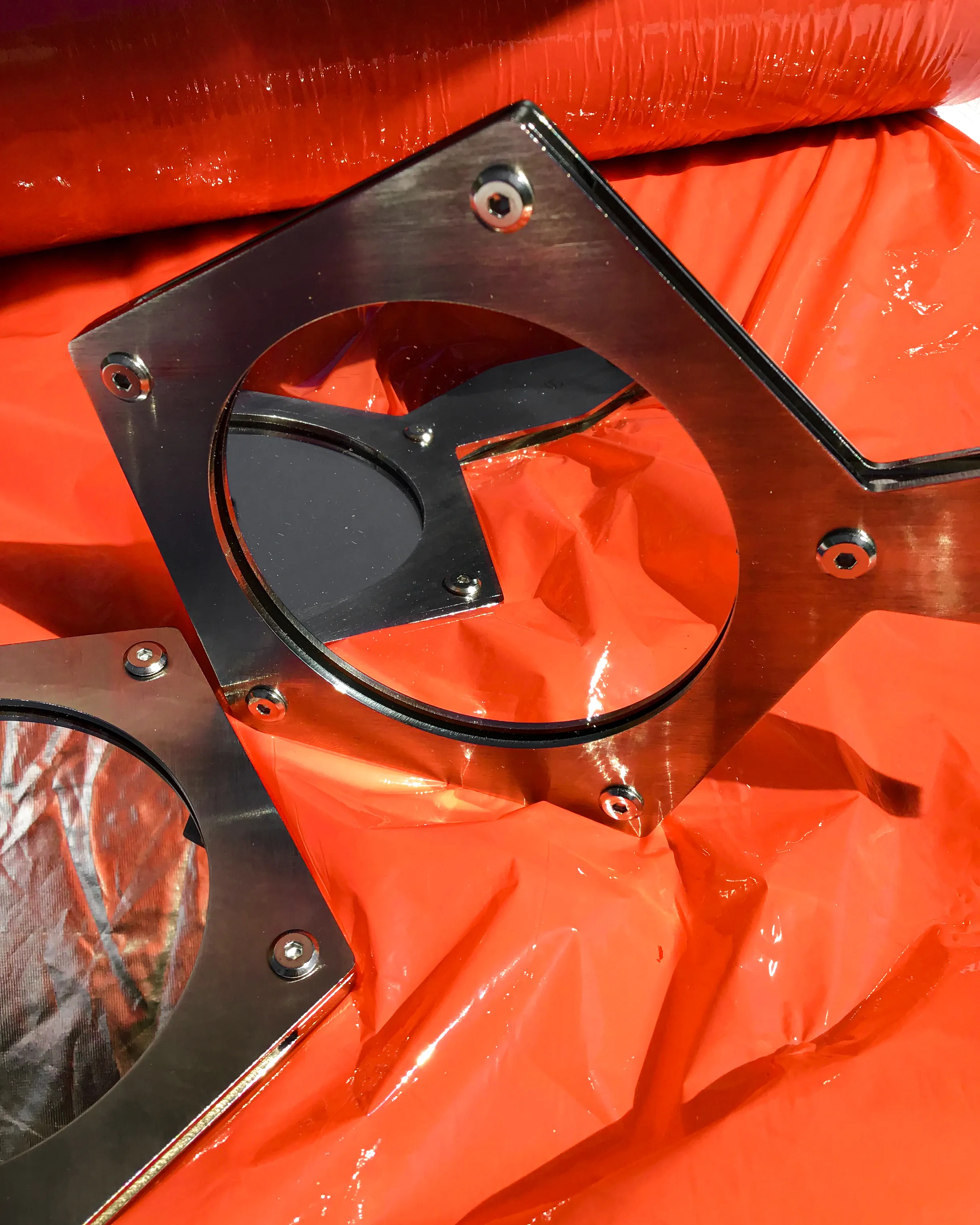 The design of this lamp gave rise to other creations as well as the 'sandwich design concept'. The insertion of assembly elements between two sheets of metal, allowing a dismountable design, became MLK Furniture's signature.