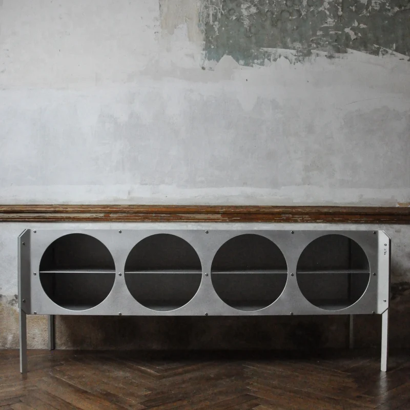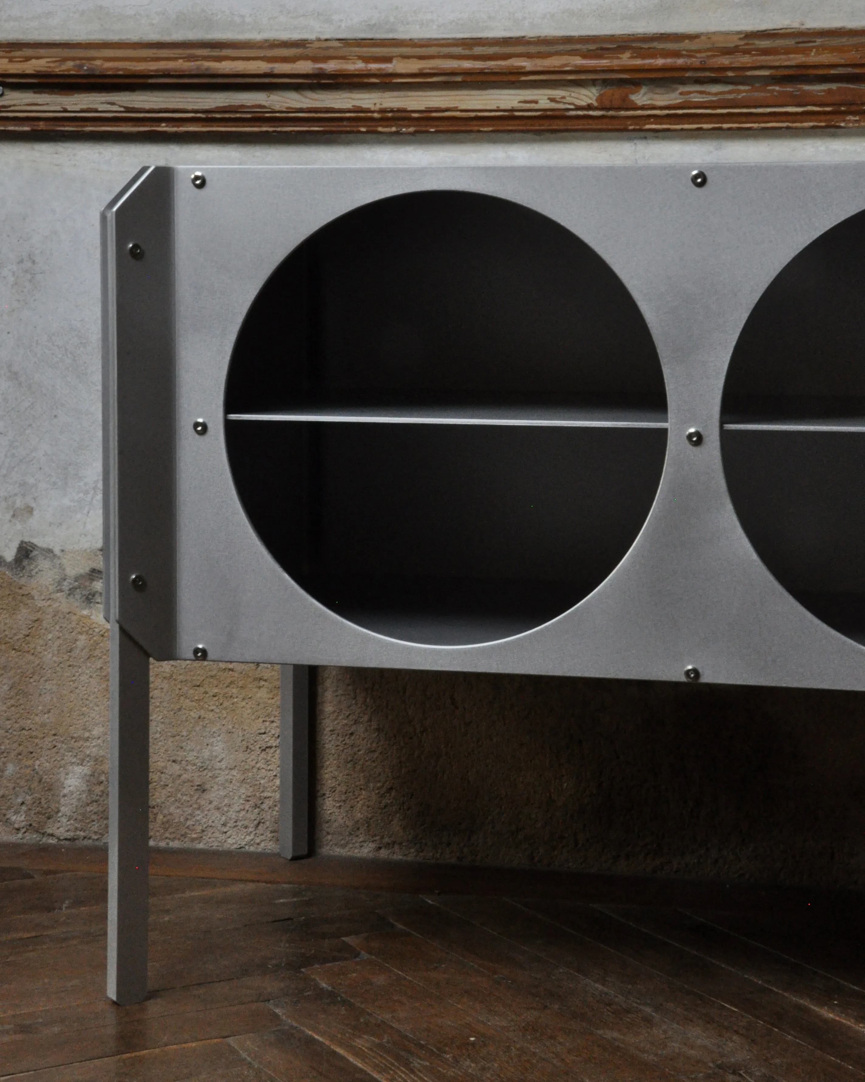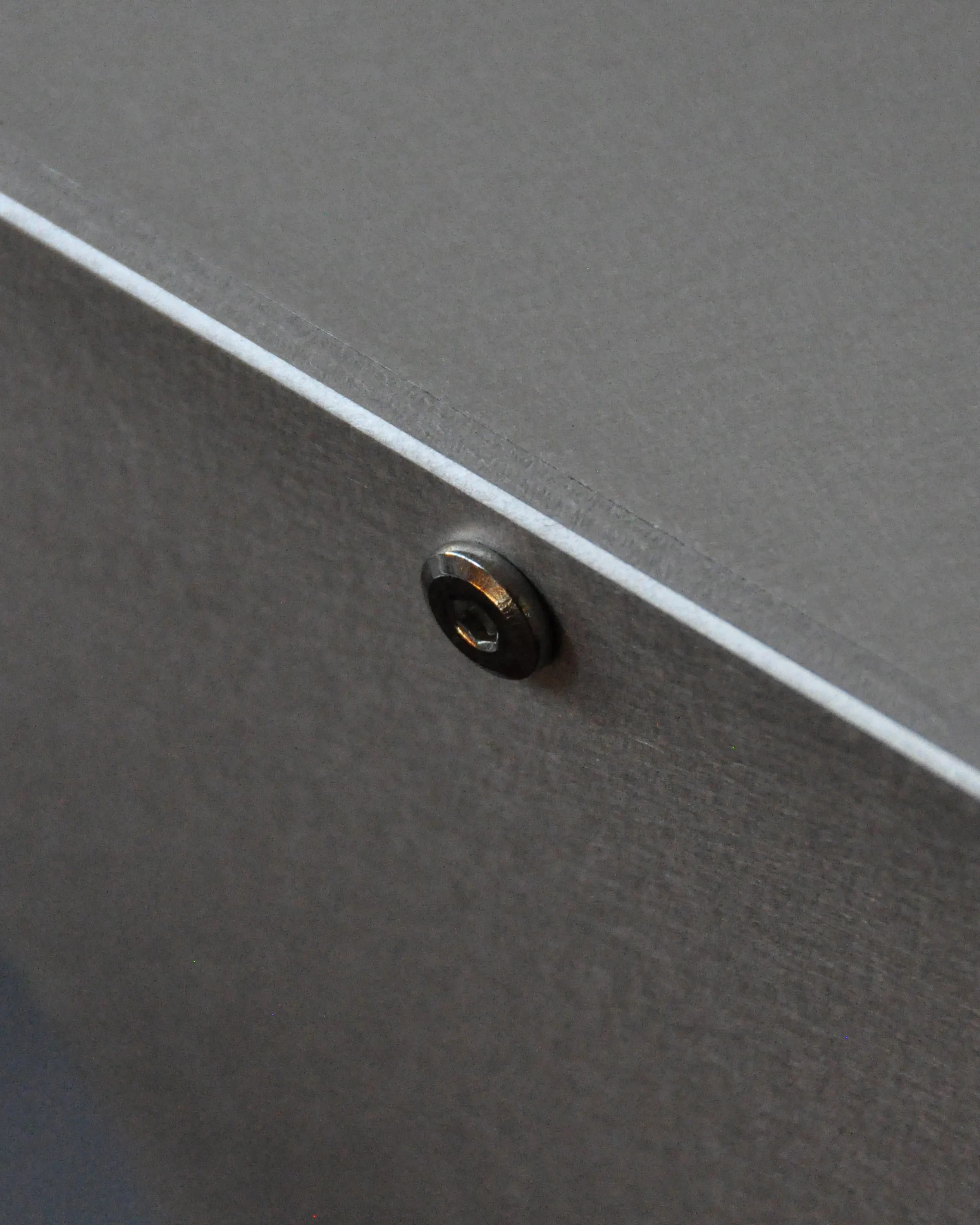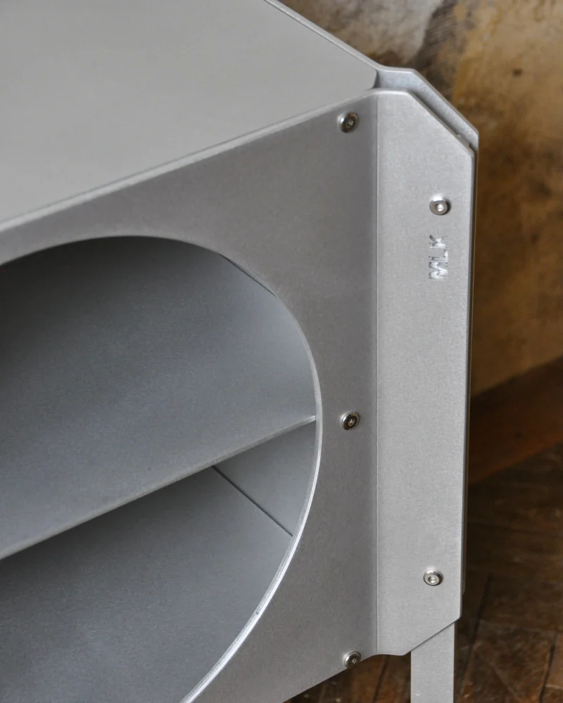 The design of this lamp gave rise to other creations as well as the 'sandwich design concept'. The insertion of assembly elements between two sheets of metal, allowing a dismountable design, became MLK Furniture's signature.