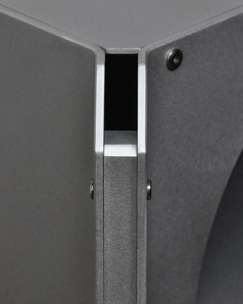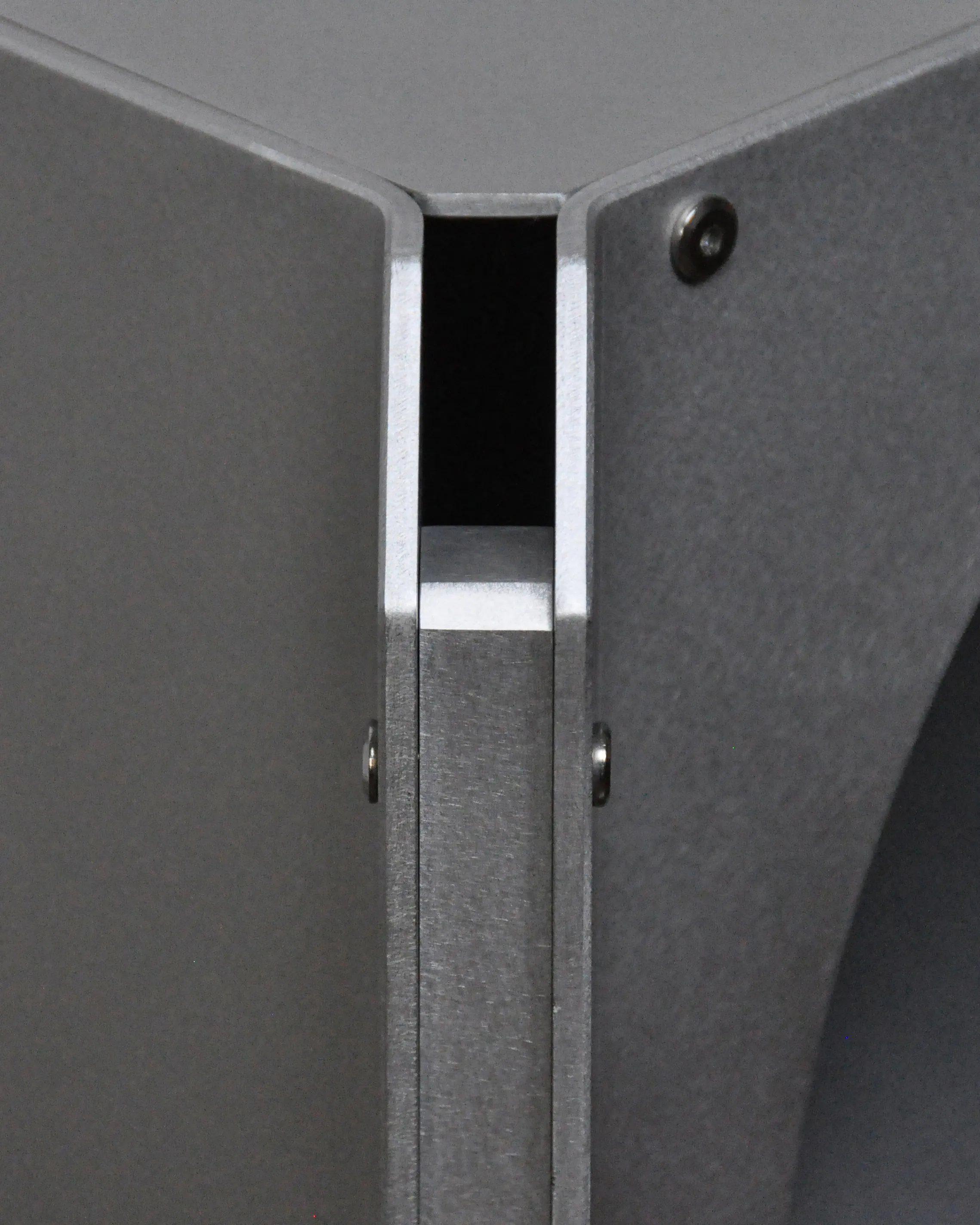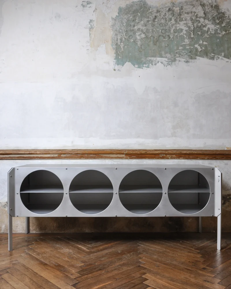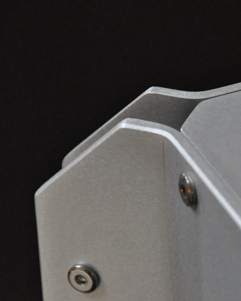 The design of this lamp gave rise to other creations as well as the 'sandwich design concept'. The insertion of assembly elements between two sheets of metal, allowing a dismountable design, became MLK Furniture's signature.