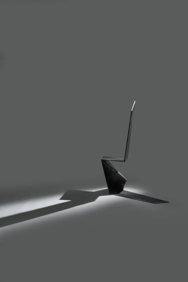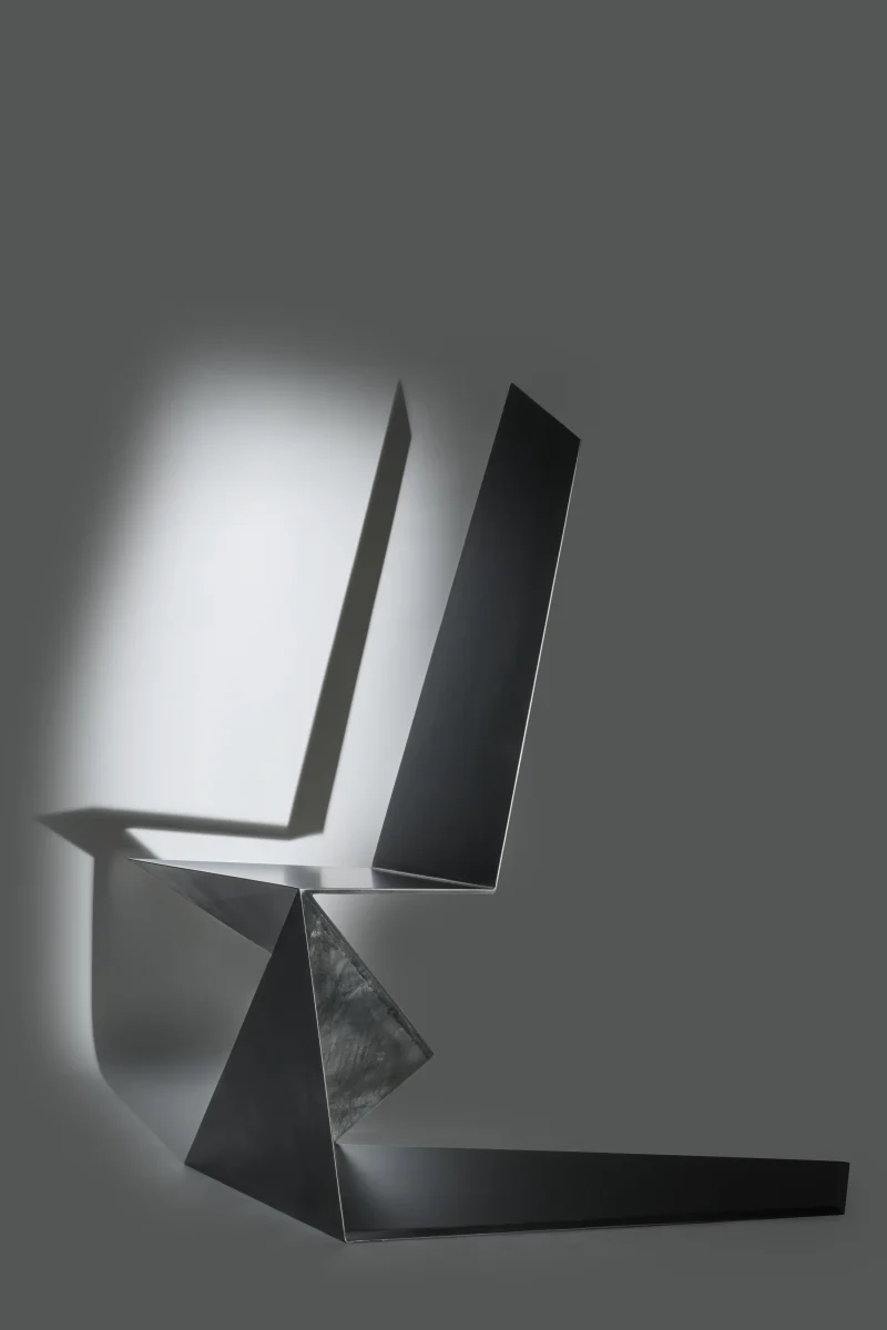 Dark Side by ORFEO STUDIO is a seat made entirely of sheet metal composed of connected elements that are completely welded together and polished, the elements that compose it are designed and positioned with a well-defined parametric scheme that ensures a static balance to the piece, the contrast between chiaroscuro declares a poetic and latent style from the geometric prospect, a direct consequence that leads to the development independently a conceptual design with futuristic lines.