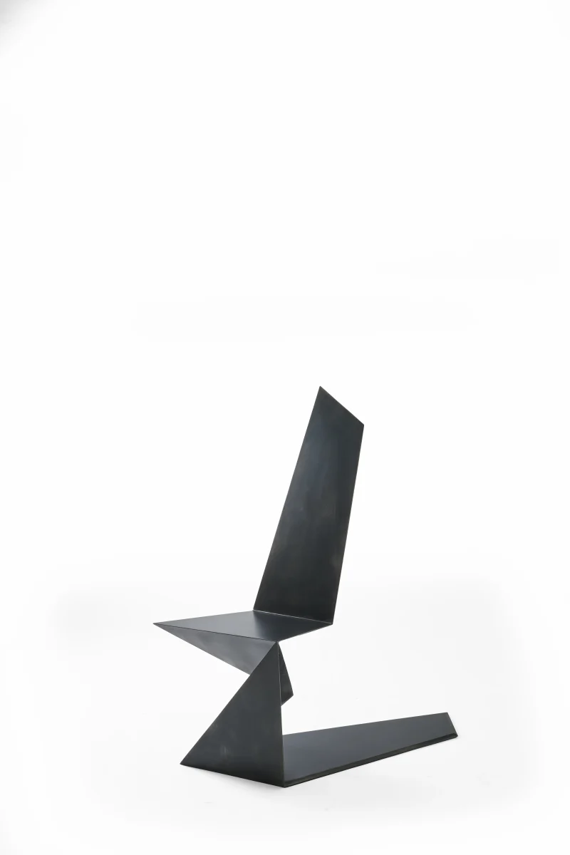 A seat that breaks the balance of chiaroscuro where a high, sharp backrest generates a shadow on the floor that as it develops in height seems to come alive almost as if to take on a life of its own.