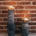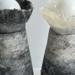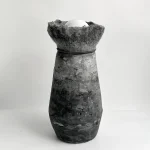 The Smokes are a product of finding catharsis in routine. Each lamp has a twin companion, one light and one dark, and is sized using the same terms as Starbucks. The black-grey gradients are inspired by smoke clouds, to evoke a lightweight, fading feeling. Minimal, balanced compositions highlight the nuances of hand-wrought materials, raw wool, and concrete. Topped with delicate Merino shades, hardened in resin.