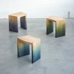 Dawn is a collection of solid wooden furniture by Studio Onno Adriaanse, embodying the serenity of early mornings. It’s all about combining solid oak with a gradual color shift. Starting with a serene, dark color, the oak wood transforms, revealing a gradual fade into a transparent finish. This combination creates a captivating play of color and transparency that catches the eye.