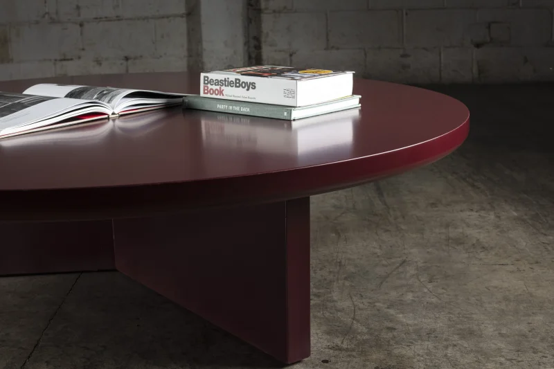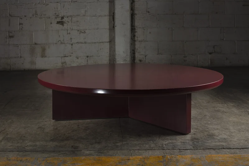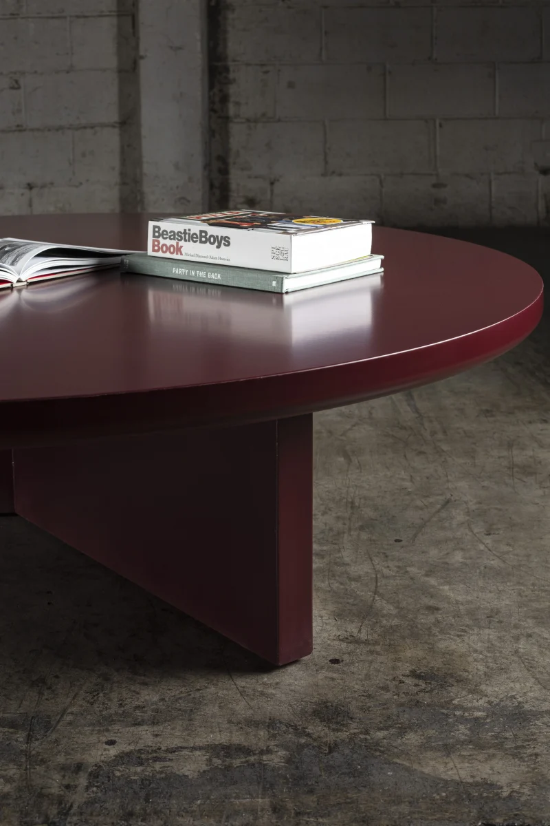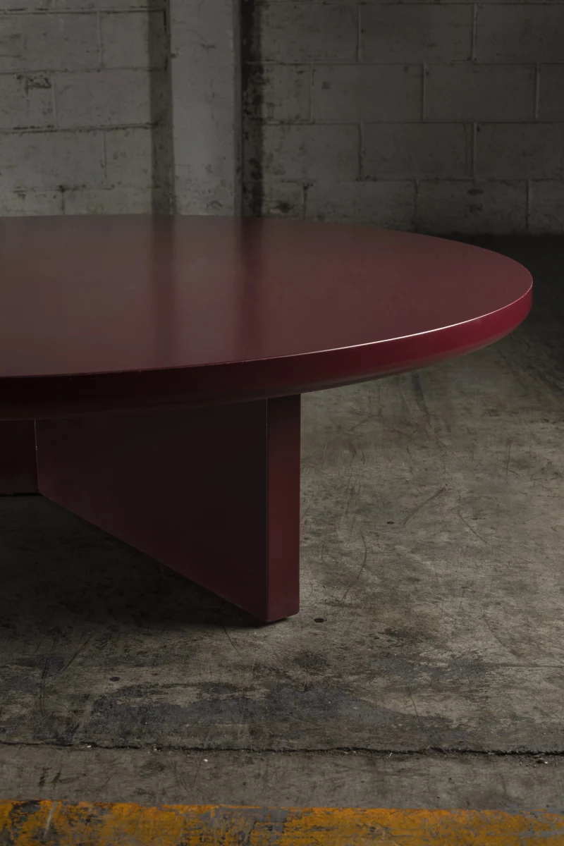 Round Deep Dark Red Lacquer Coffee Table by NO AGE STUDIO.