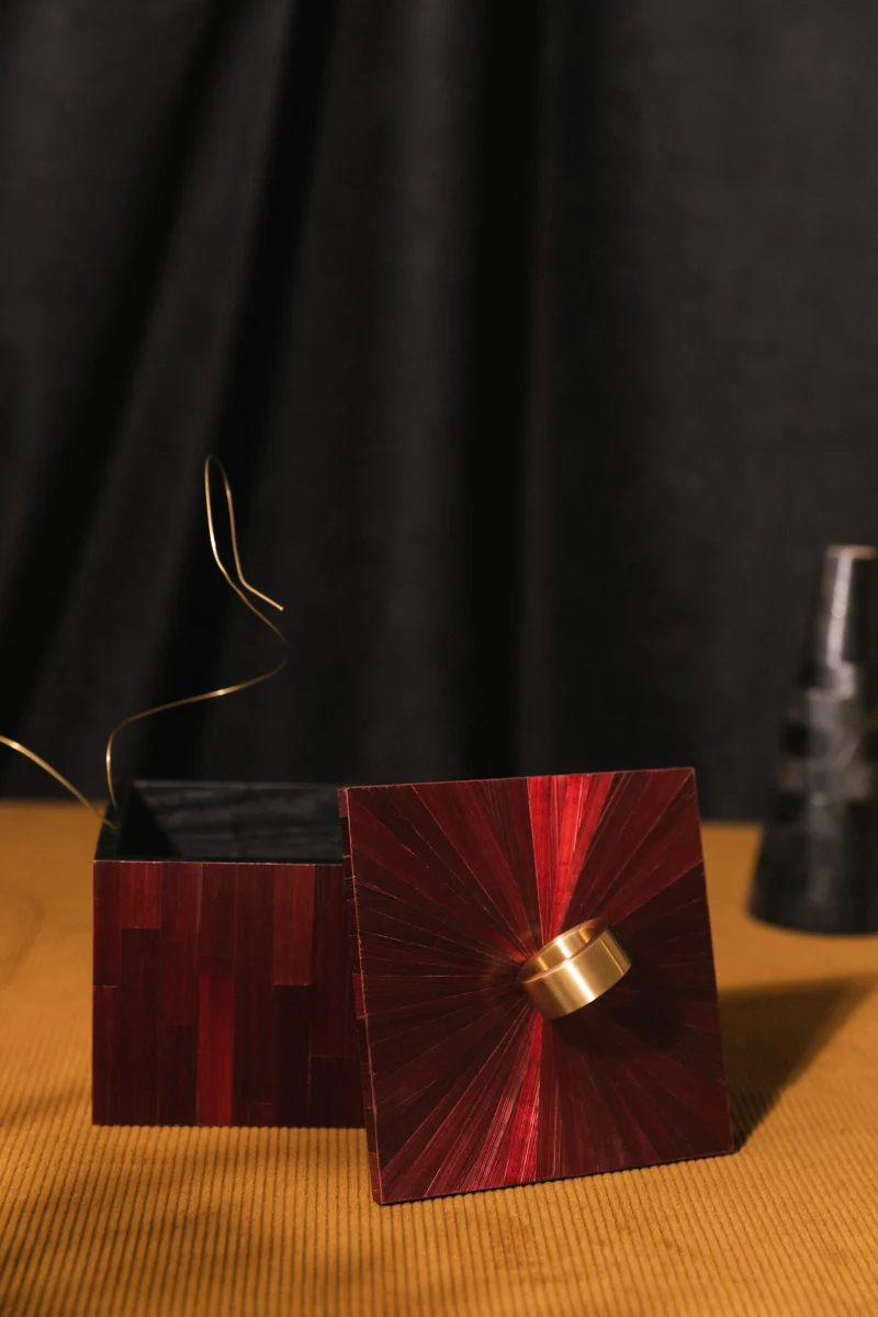 The box made in straw marquetry technique.