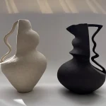 At the first sight, the vases in this themes look like as a standard vase with a handle. But the handle is the same shape as the symetrical side of the vase. It completes the deficient part of the external silhouette of the main body.