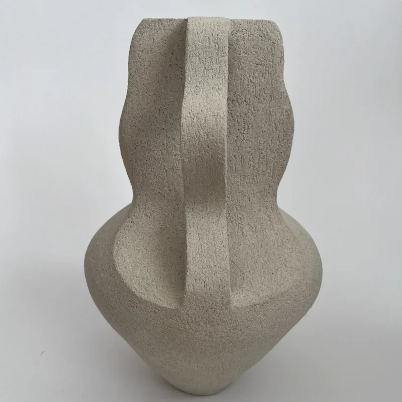 To keep the naturalness of the material it left unglazed. Therefore, it is not water tight and is suitable only for dried flowers.