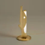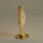 Deramo Lamp finds its inspiration in Sophie Taeuber-Arp’s Stag King, a Dada-era puppet theatre where figures took shape within a liminal aesthetic between human and object. Formed in gold-finished metal, light flows through the eyes of the figure, animating the face with a quiet expression. When off, it exists as sculpture; when illuminated, it performs as light.