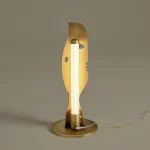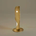animated face Art Lighting Collectible lamp dada puppet deramo lamp face silhouette figurative light gallery lighting glowing eyes gold metal golden finish light through liminal design Metal sculpture modern dada object figure performative light poetic light puppet form Sculptural lamp Sculptural object stag king statement lamp taeuber arp theatrical lamp