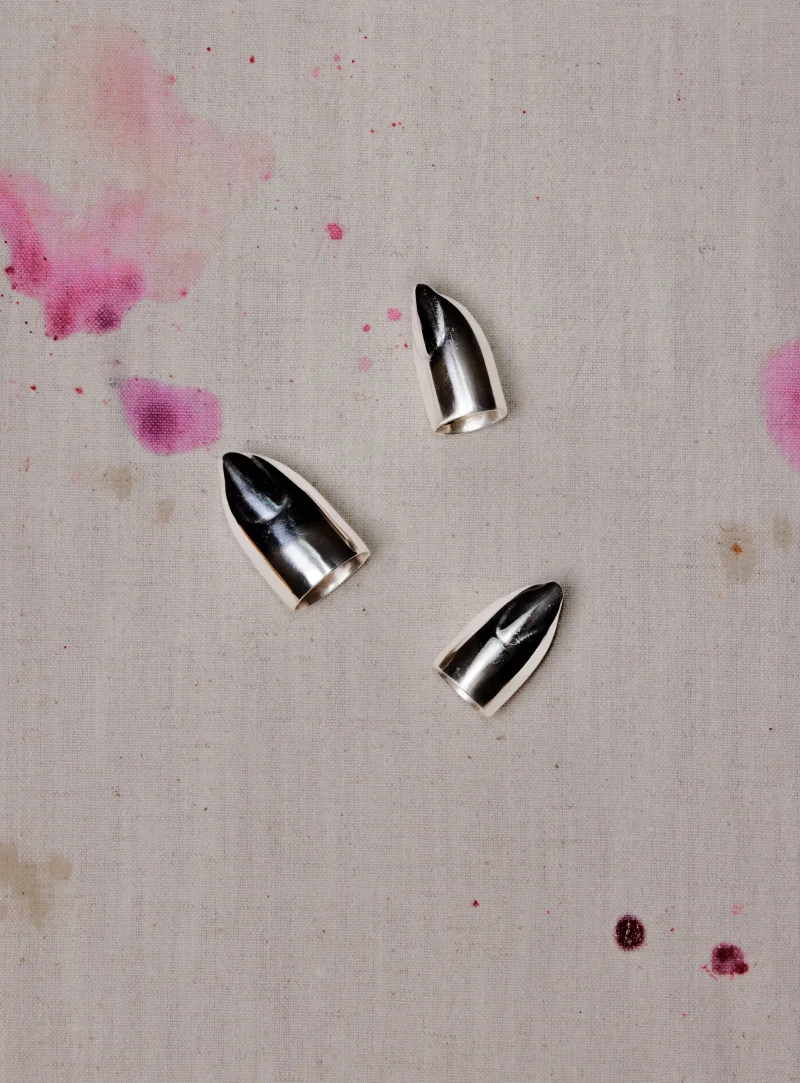 The set consists of three fingertip attachments designed for the thumb, index finger, and middle finger of the right hand. Upon request, the attachments can be crafted for other fingers and sizes.