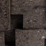 Square Totem with Straight Reliefs in Gray Cantera. Suitable for indoor or outdoor use.
