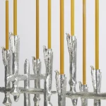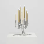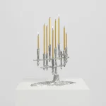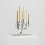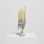 This candleholder by Vilius Dringelis is made based on innovative, modern digital technology and deep knowledge of the craft. The artist in the creative process and in the structures of objects uses the forms of foil prints, which he randomly finds and imprints in the city or household. According to this principle, existing objects are transformed and rearranged into new design elements. Later, innovative technologies are combined with various materials to create exclusive collectible design items that become original interior accents with unique stories.