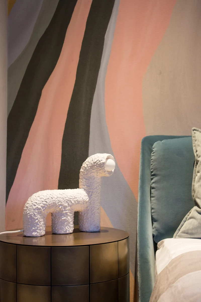 As children, we develop images and make-believe creatures in our own worlds.These, in turn, help us establish connections with others over time – giving us confidence through their presence. The Animal Lights series of lamps by Studio Bovti expresses this story through their forms. Consisting of the Dino, Monkey, and Worm lights, the connection to our own inner child exudes through their highly playful forms. The expression of light-heartedness and joy is supported by the atmospheric light, which provides warmth and calms the inner spirit. The playful, colorful structures produce a smile on viewers‘ faces.