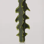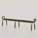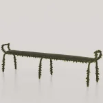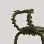 Each piece consists of a tubular steel structure—a simple, recognizable form—dressed in a hand-sewn, spiky textile cover that transforms it into a creature.