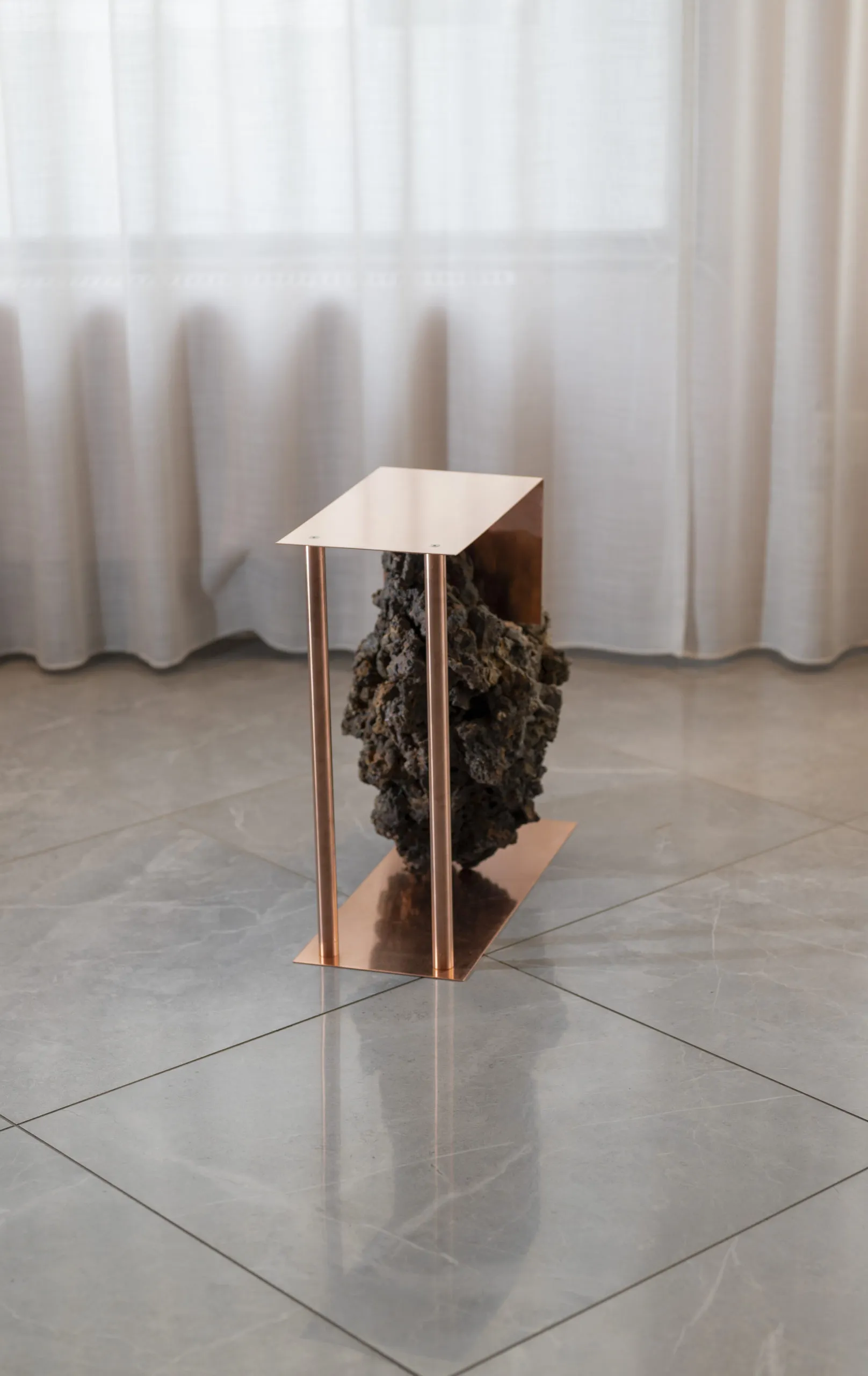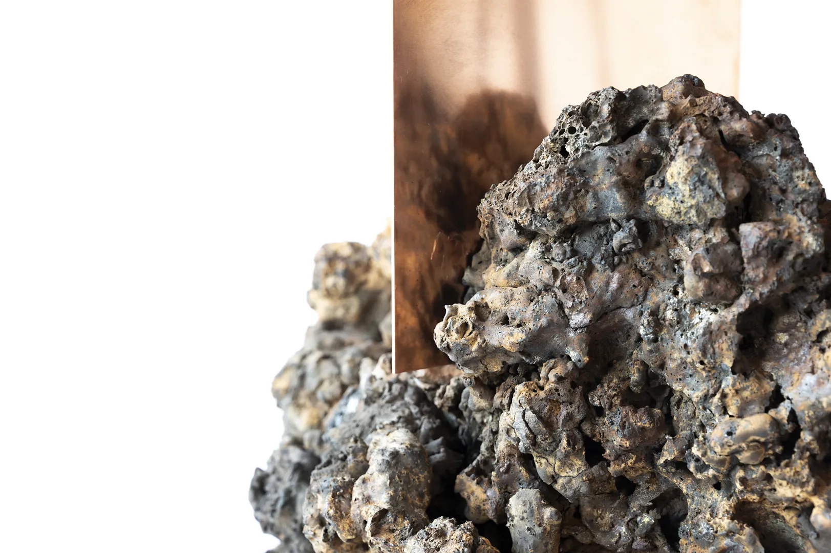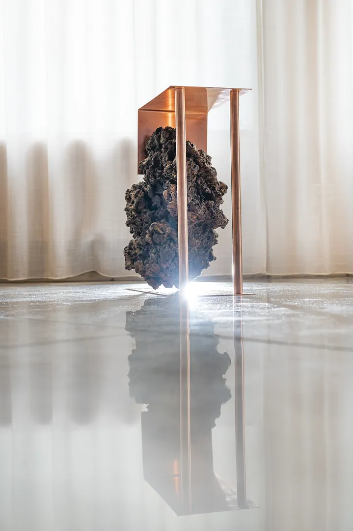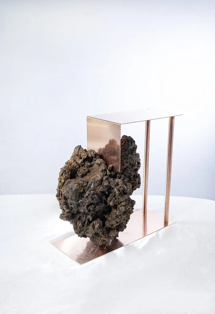 “Död Mark” is a side table made of slag and copper from the Falun copper mine in Sweden. This table is a diagram of a material’s lifecycle, from extraction to residual material. A material that has shaped welfare such as world wars, environment, and geography. The finished product, in balance with the waste it creates, exposes the material’s origin and history.