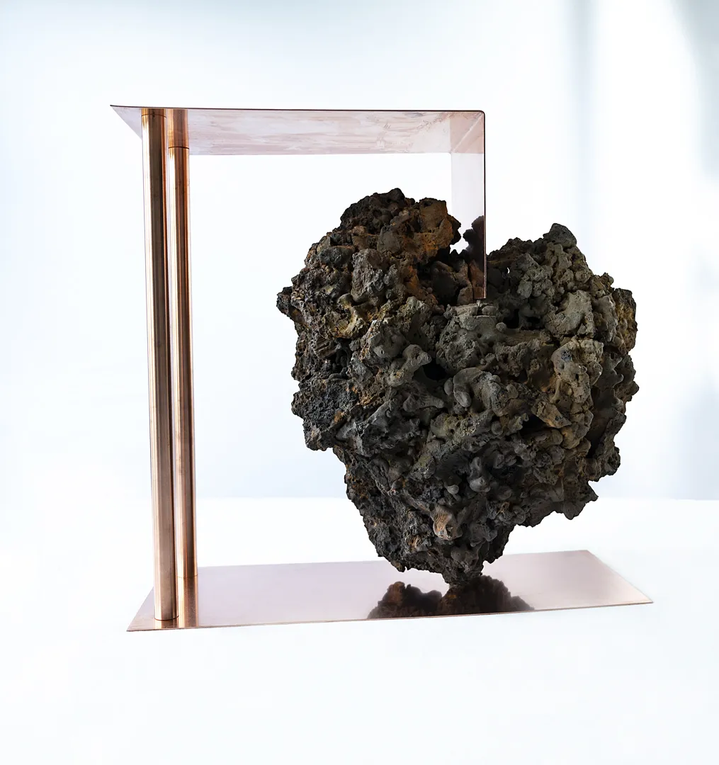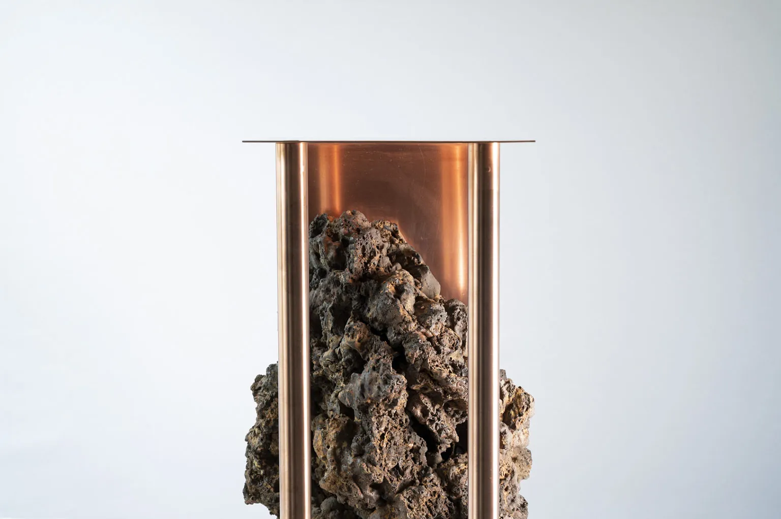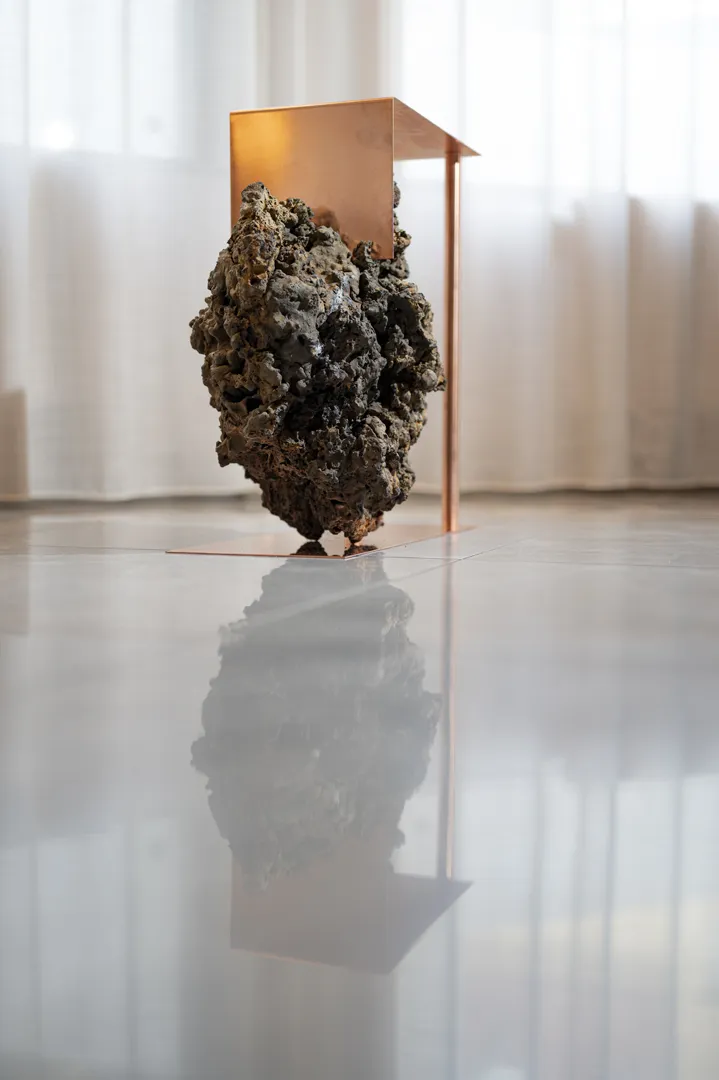 “Död Mark” is a side table made of slag and copper from the Falun copper mine in Sweden. This table is a diagram of a material’s lifecycle, from extraction to residual material. A material that has shaped welfare such as world wars, environment, and geography. The finished product, in balance with the waste it creates, exposes the material’s origin and history.