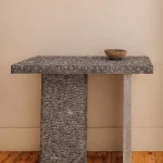 The Dolmen Console by Studio Gameiro explores the raw character of Lecarrow Limestone, combining hand- and bush-hammered textures in a balanced, sculptural form. Inspired by custom pieces for the Palmeira Apartment in Lisbon, this console reflects a careful exploration of material and structure, where each element contributes to a timeless equilibrium.