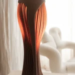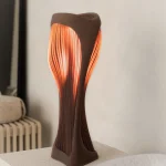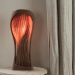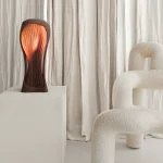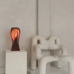 The lamp emanates a warm, ambient glow that evokes the hazy reds and oranges of a desert sunset as the light diffuses through the sand material, creating a captivating interplay of light and shadow. The design language of the Para Dune lamp is both flowing and organic, evoking the undulating shapes and textures of desert sands. Its shape is a balance between delicacy and boldness, creating a simple sculptural beauty.